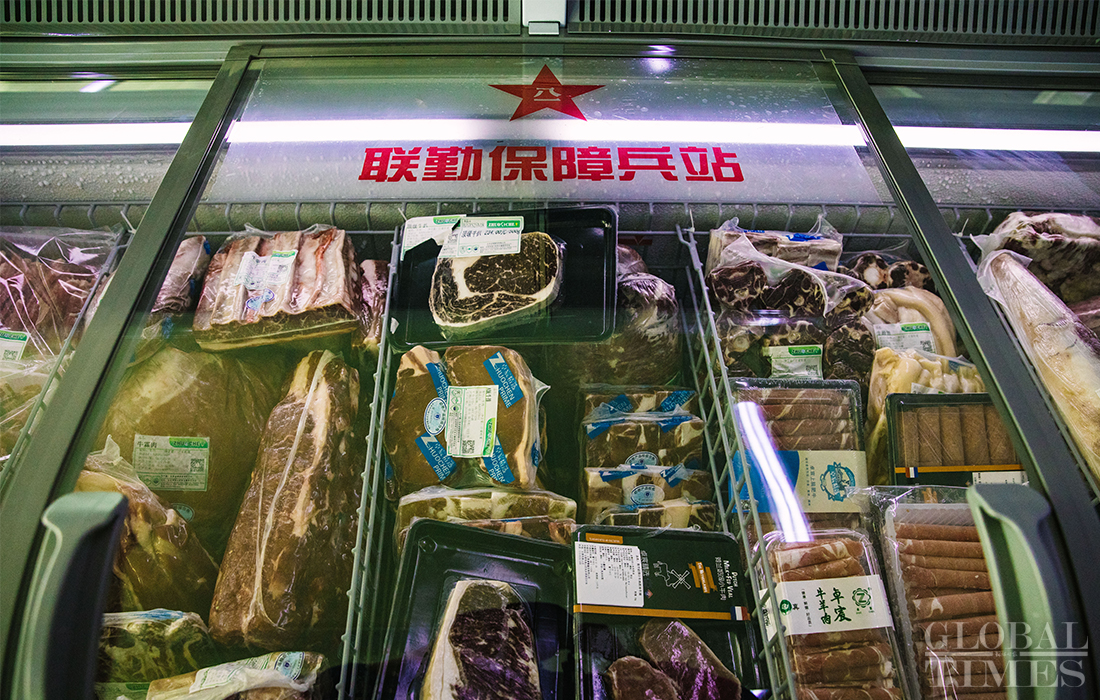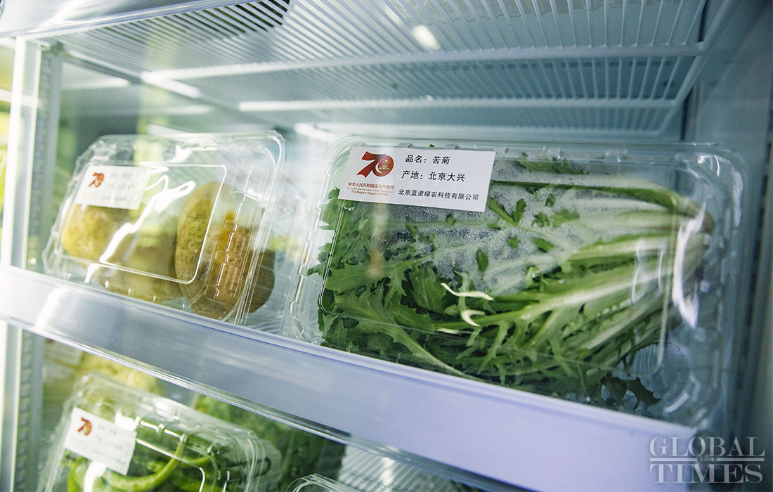 Food ingredients including vegetables and meat can be bought at the parade training center in Changping district, Beijing on September 17, 2019. Photo: Li Hao/GT figcaption >