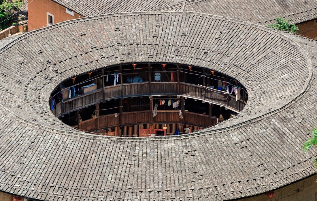 Consisting of 46 buildings, constructed between the 15th and 20th centuries, Fujian Tulou is an exceptional example of dwelling in a large community within one building. The structure of these buildings is circular with hollow centers or square-shaped. Located in the mountainous area of East China’s Fujian Province, the multi-storeyed structure testifies the defensive way of communal living and also fits in the landscape aesthetically. It was added to the World Cultural Heritage list in 2008. figcaption >