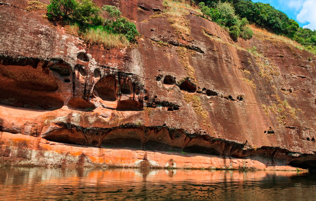 Stretching from Southwest China’s Guizhou Province to East China’s Zhejiang Province, Danxia is the kind of landscape developed on continental red terrigenous sedimentary beds under the influence of endogenous forces (including uplifting) and exogenous forces (including weathering and erosion), featured by red cliffs and eroding landforms. It hosts subtropical broad-leaved evergreen forests and many rare or endangered species of flora and fauna. It was listed on the World Natural Heritage Site in 2010. figcaption >