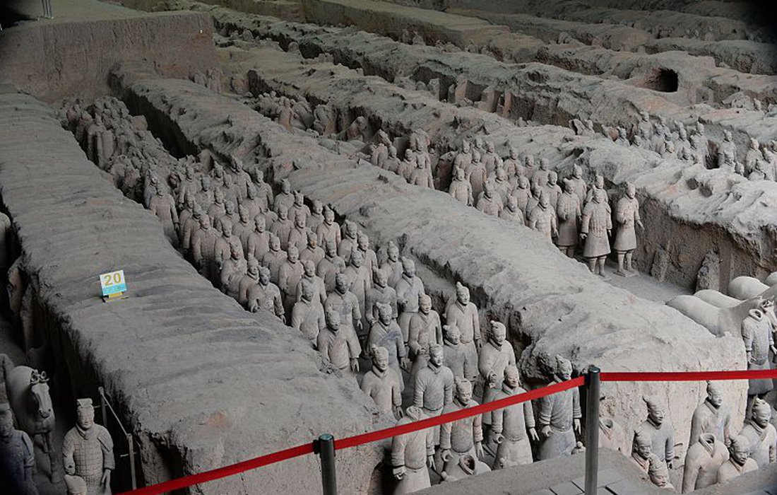 On the foothills of Lishan Mountain, 35 kilometers northeast of Xi’an, capital of Northwest China’s Shaanxi Province, the famed terra cotta army is seated. The terra cotta warriors are unique and incomparable burial objects for China's first feudal Emperor Qinshihuang, the founder of China’s first collective sovereign Qin Dynasty. The mausoleum was found in 1974 and inscribed on the World Cultural Heritage list in 1987. figcaption >
