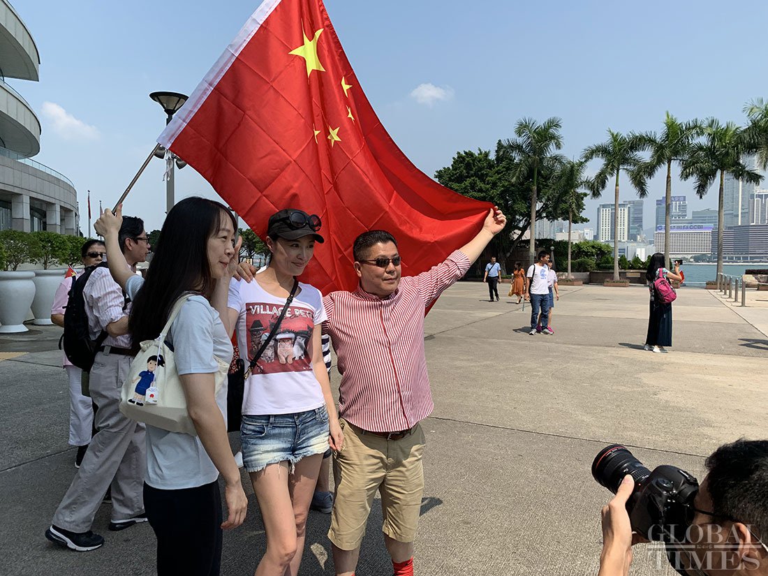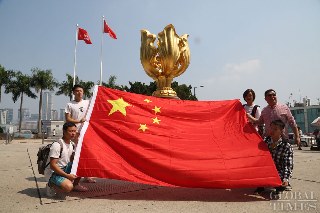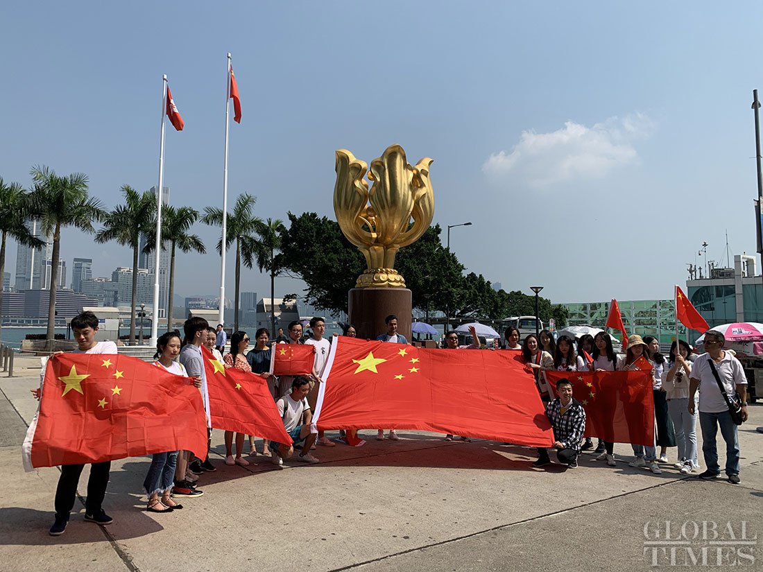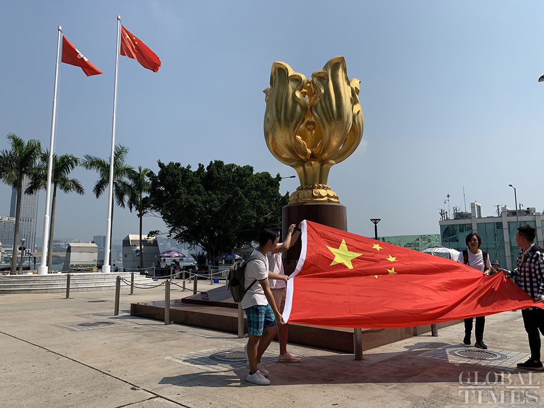 A group of university students in Hong Kong organized a gathering on the morning of September 28, 2019, at Golden Bauhinia Square, singing the Chinese national anthem and waving Chinese national flags to celebrate the upcoming 70th anniversary of the founding of the People's Republic of China. Over 30 local residents joined the group, and said they had hoped to celebrate the anniversary despite ongoing social unrest.