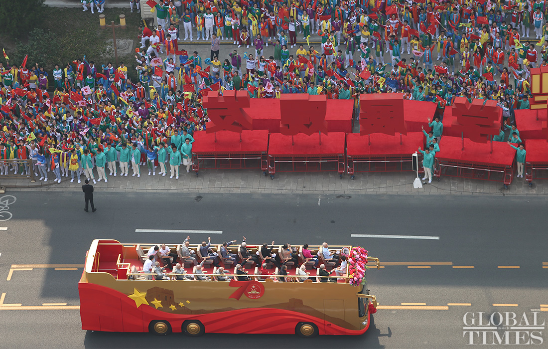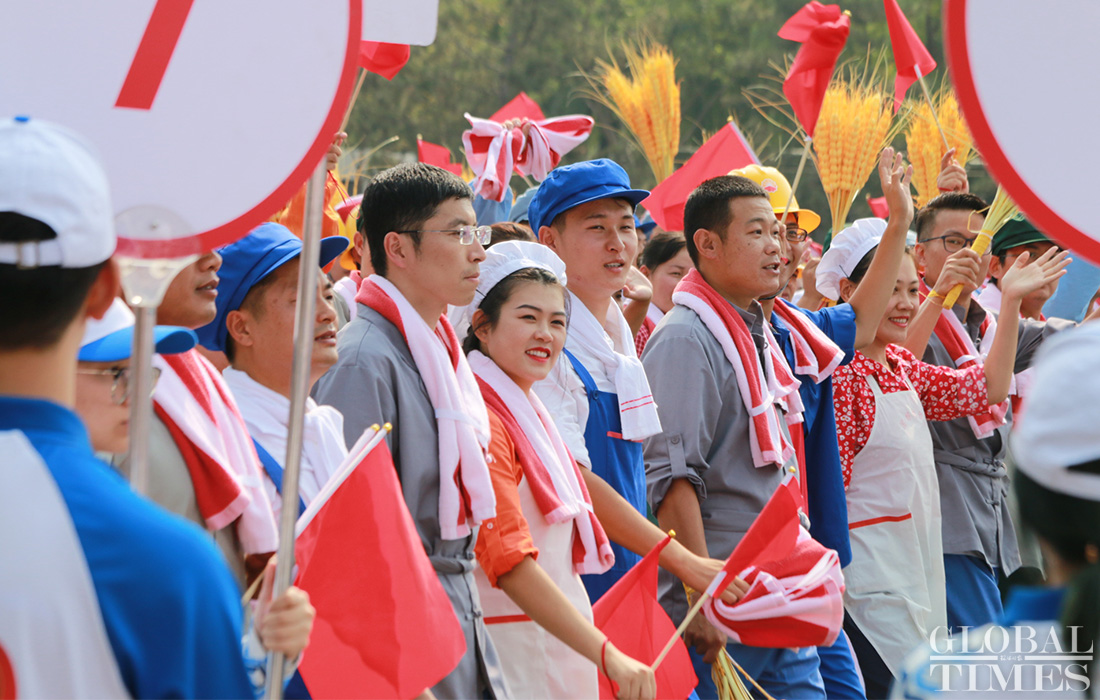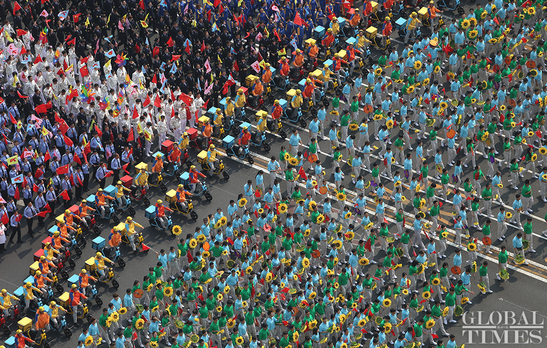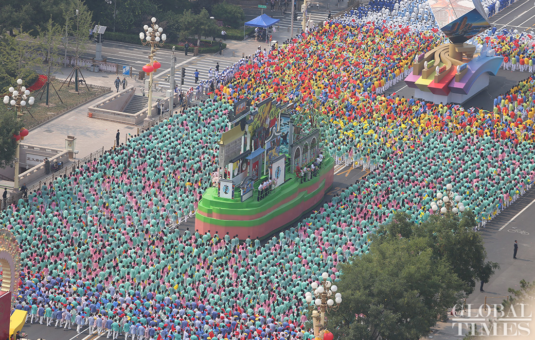 100,000 people, 70 floats and 36 phalanxes march along Chang’an Avenue to celebrate the 70th anniversary of PRC founding under the theme “Building the Chinese dream together.”(Photos:Fan Lingzhi,Fu Guohao,He Zhuoqian/GT)