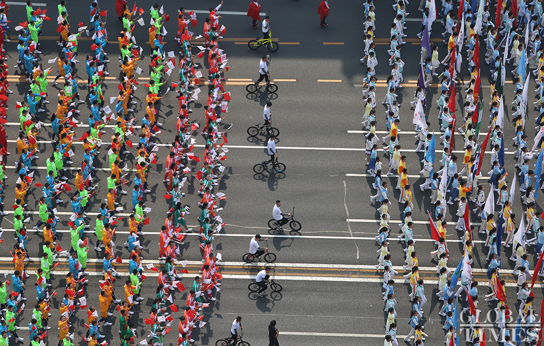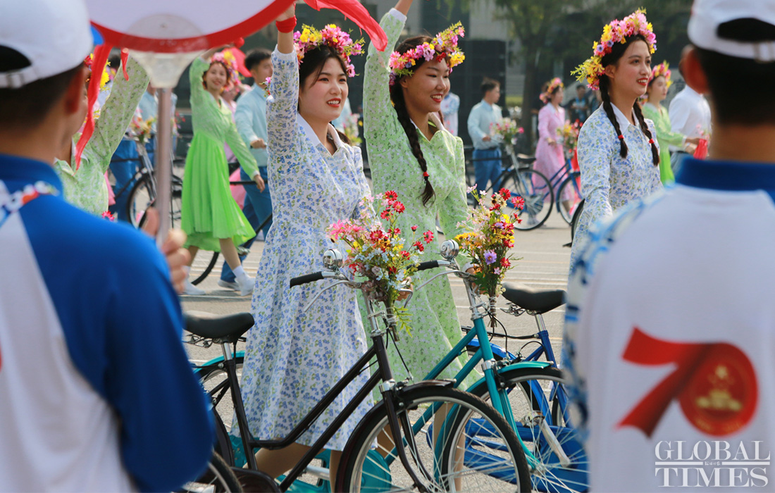 People riding bicycles are seen in the parade. Photo: Fan Lingzhi/GT figcaption >