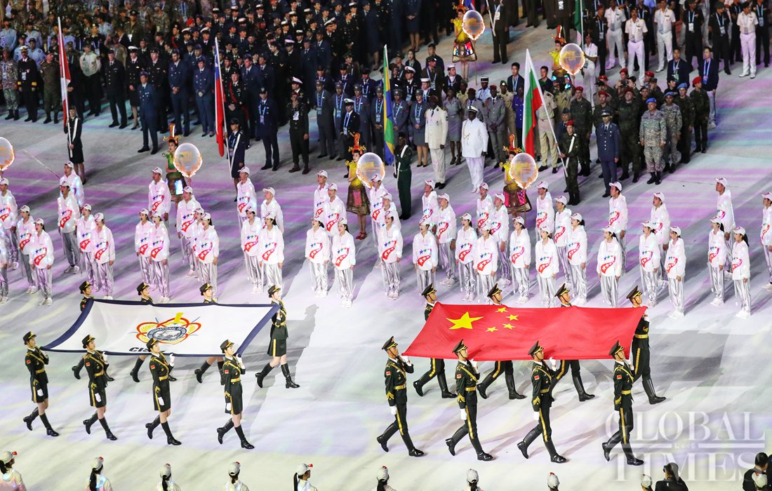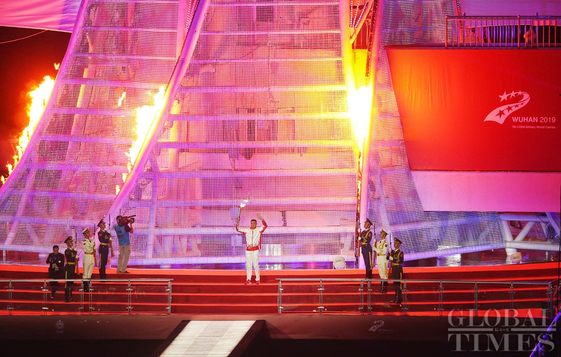 Chinese President Xi Jinping declared the opening of the 7th Military World Games on Friday evening in Wuhan, Central China's Hubei Province.The quadrennial military gala, held in China for the first time, is set to usher in a new era for the event with a couple of record-breaking endeavors. Photos: Cui Meng/GT