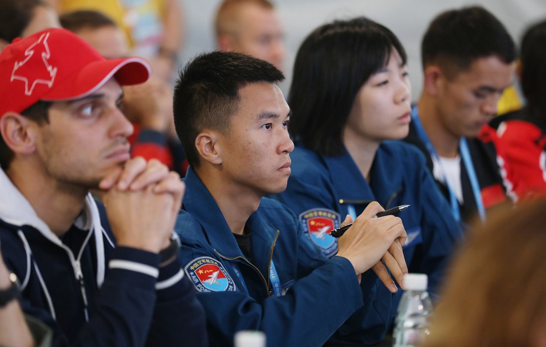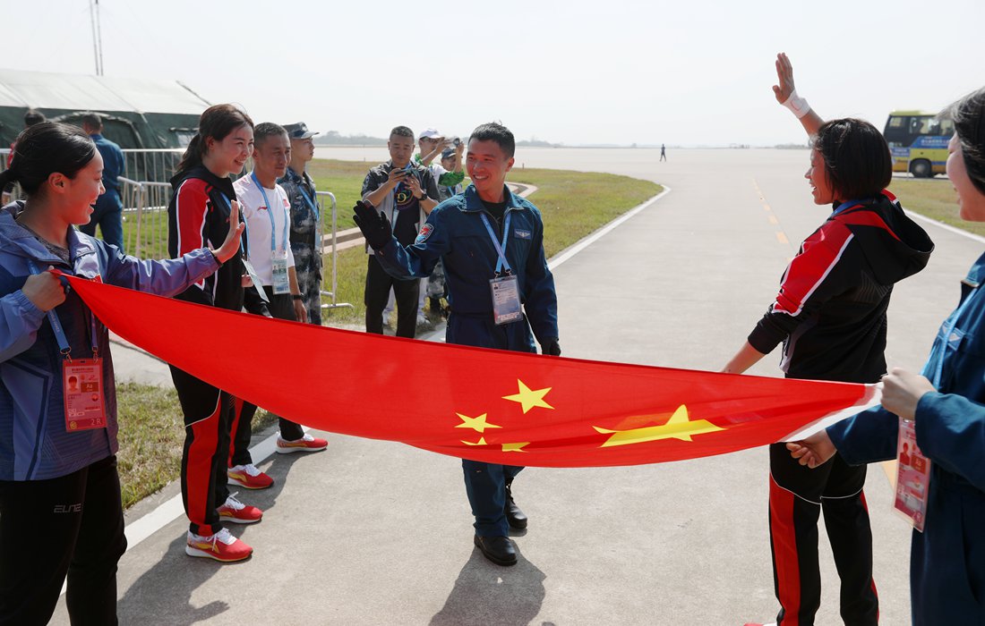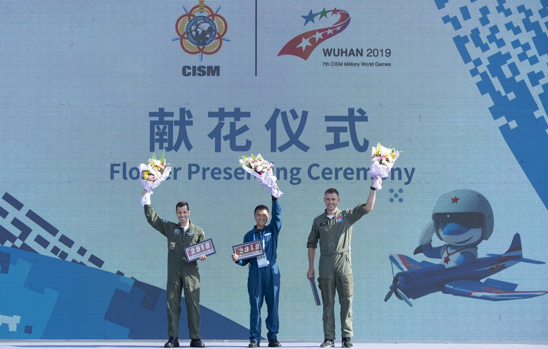 China bagged its second gold medal in the flying contest of aeronautical pentathlon at the 7th Military World Games in Wuhan on Saturday. Private Liao Weihua, navigator of the Chinese team, scored 3,500 points to rank first in the low altitude triangle navigation contest. Photos: Cui Ming/GT