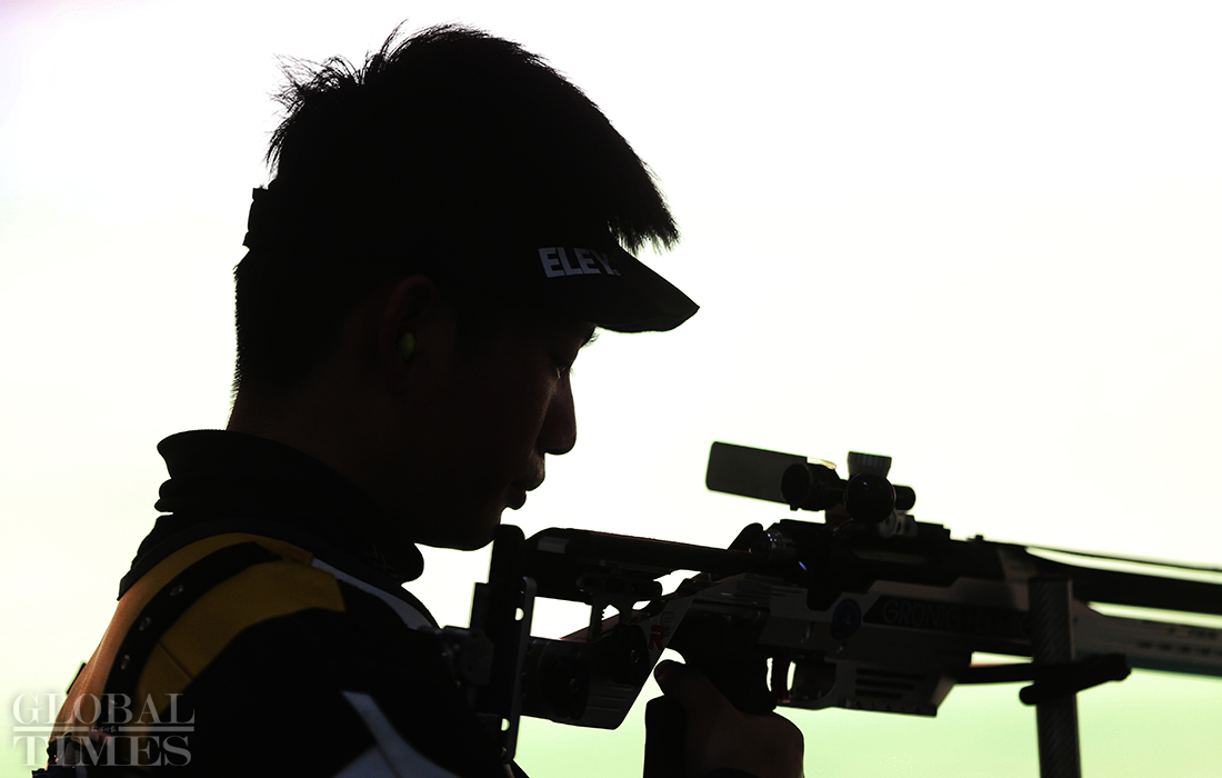 Chinese athlete Cao Bo in a shooting competition. Photo: Cui Meng/GT figcaption >