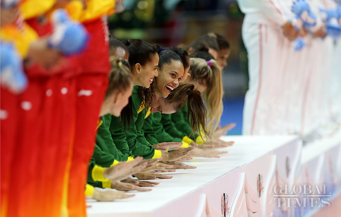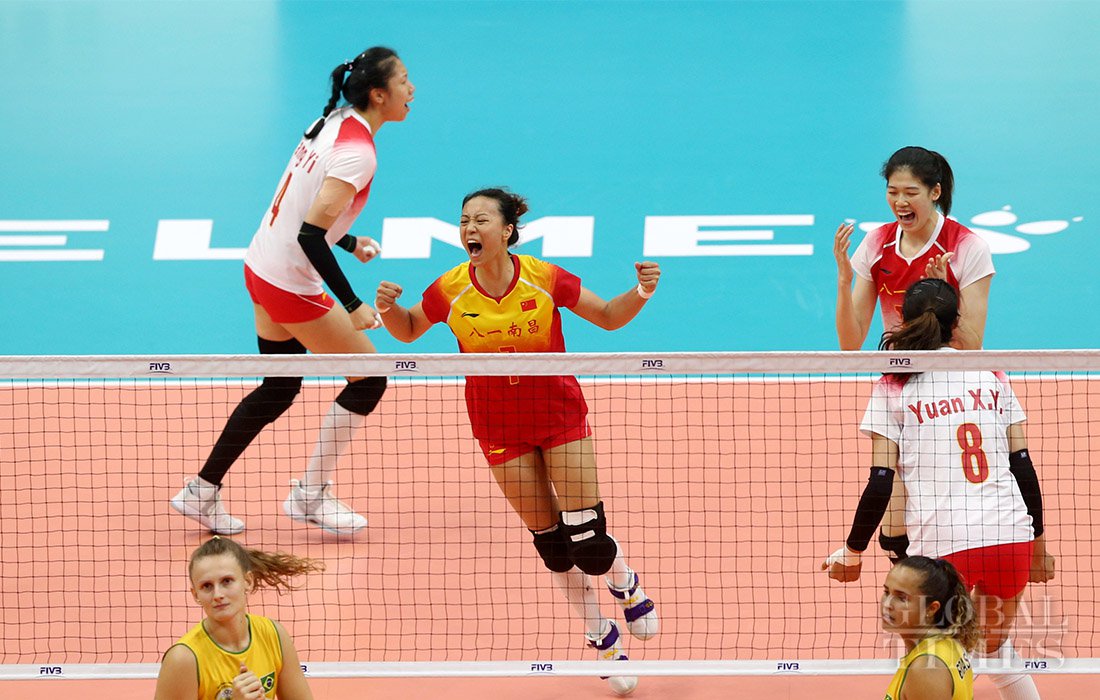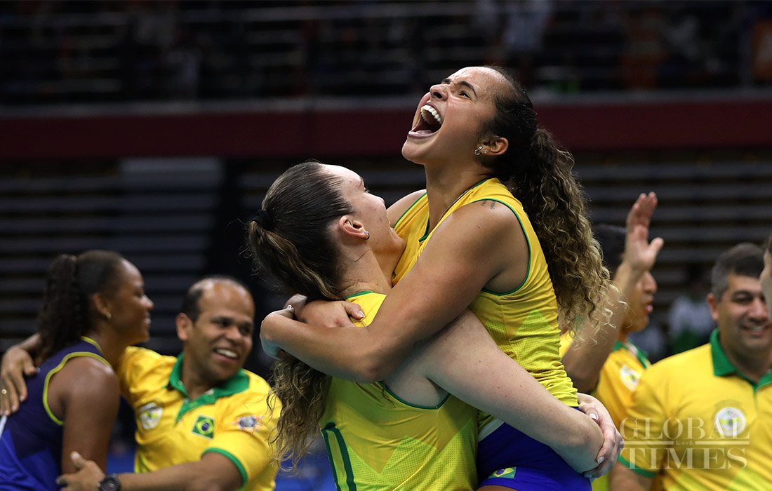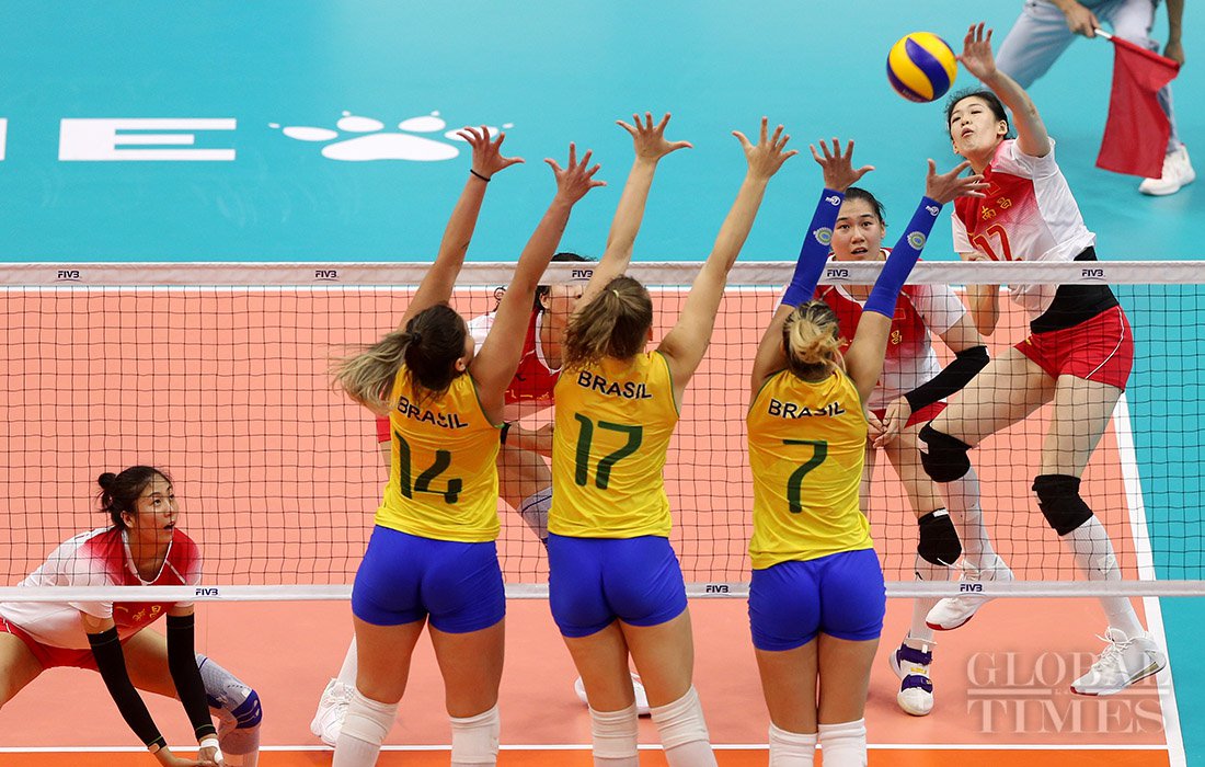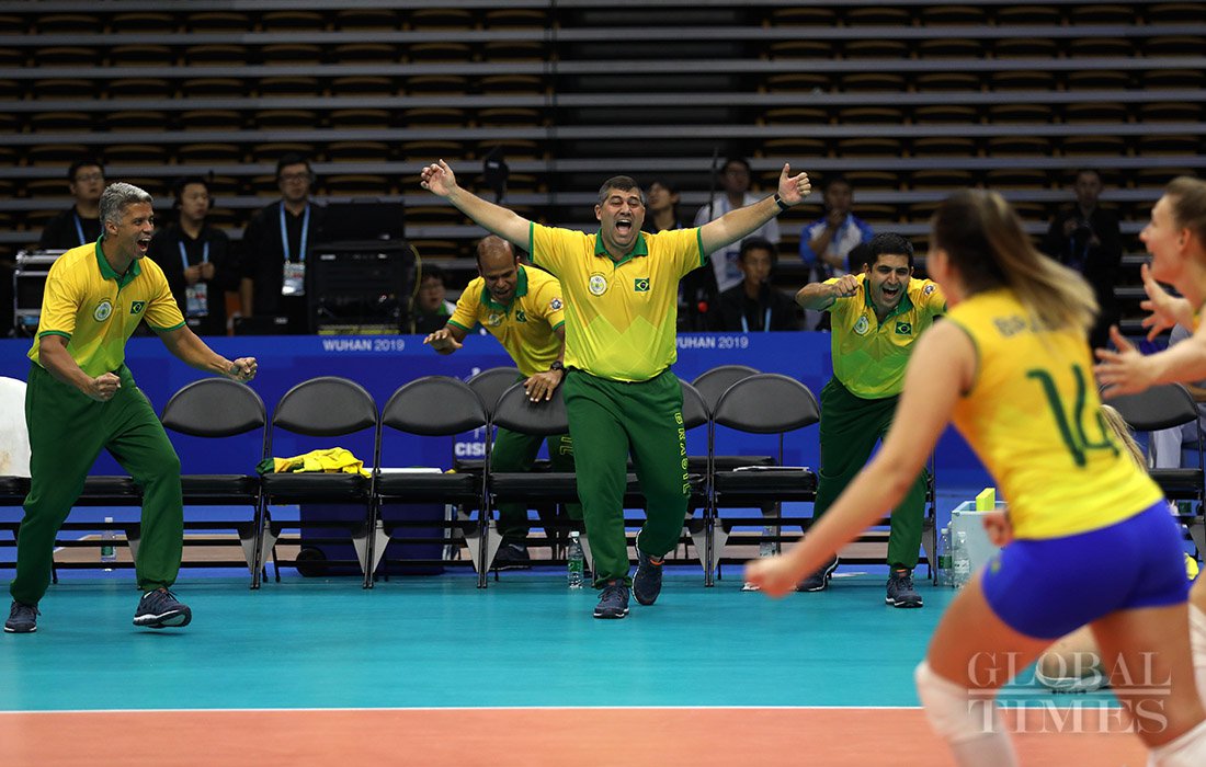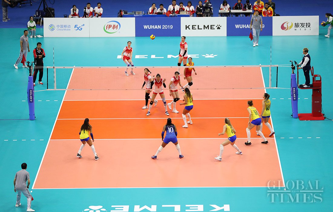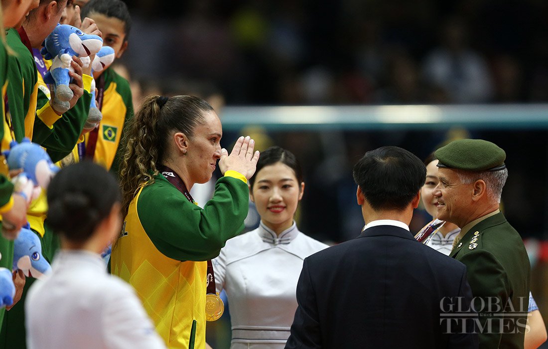 Defending champion Brazil upset host China 3-1, in the women's volleyball final to win their third straight title on Tuesday, at the 7th CISM World Military Games in Central China’s Wuhan. Photos: Cui Meng/GT