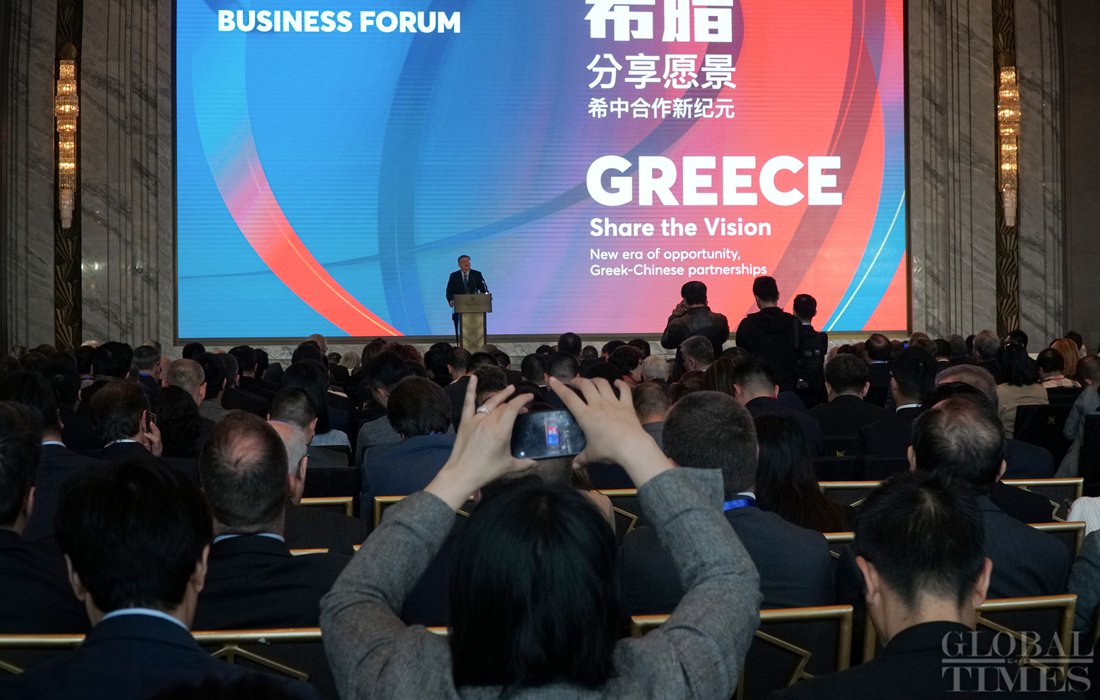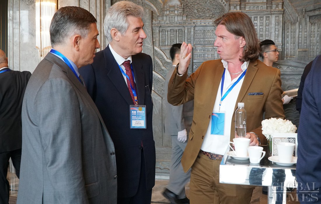 Greek Prime Minister and deputy mayor of Shanghai on Monday attended a meeting and delivered a speech in Wanda Reign on the Bund, Shanghai. Photos: Lu Ting/GT
