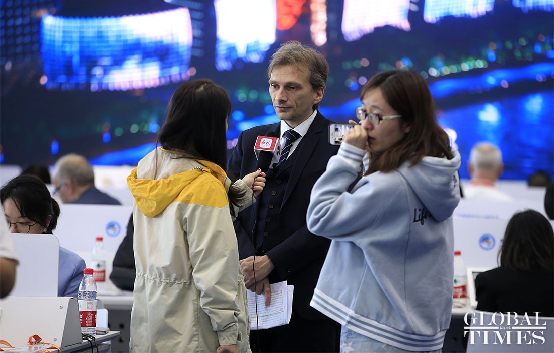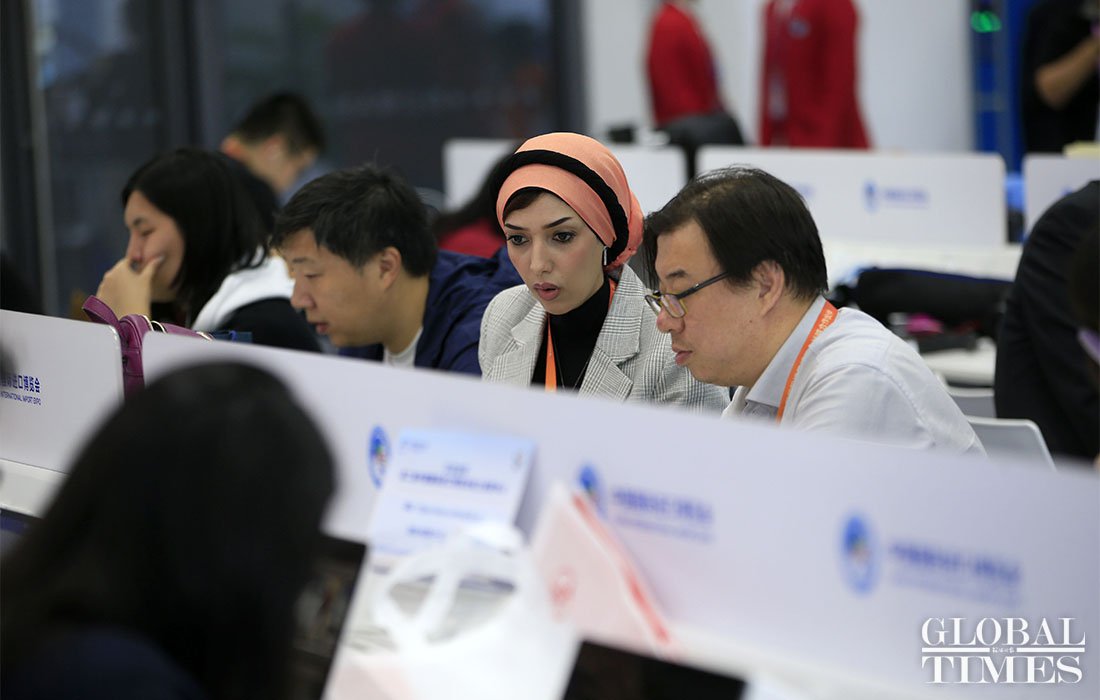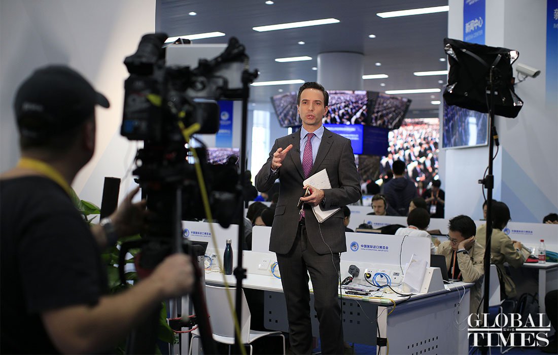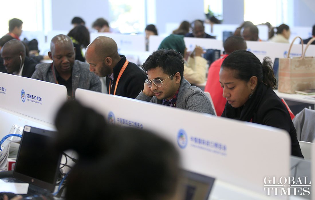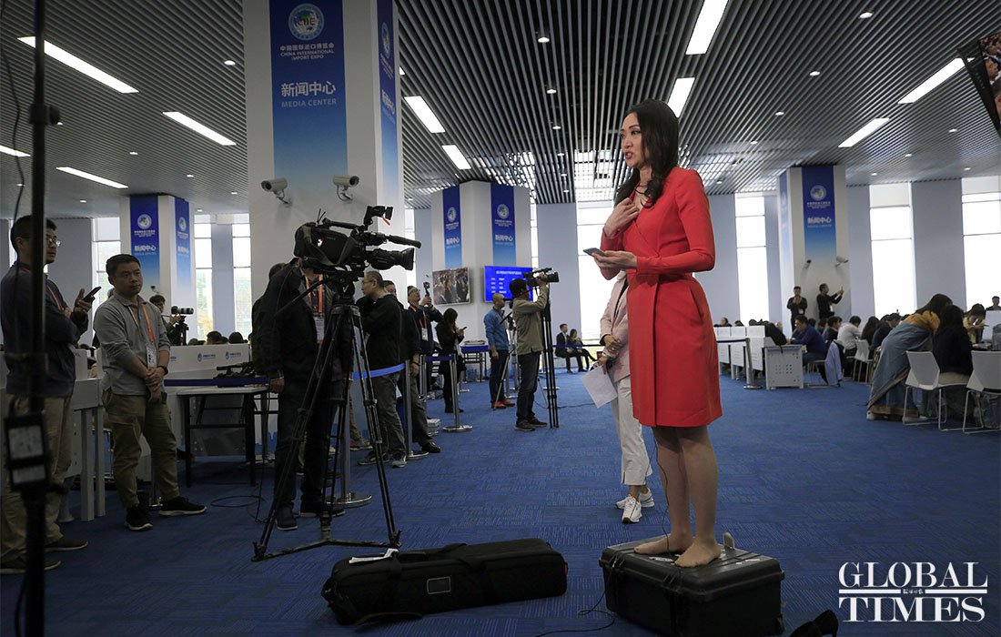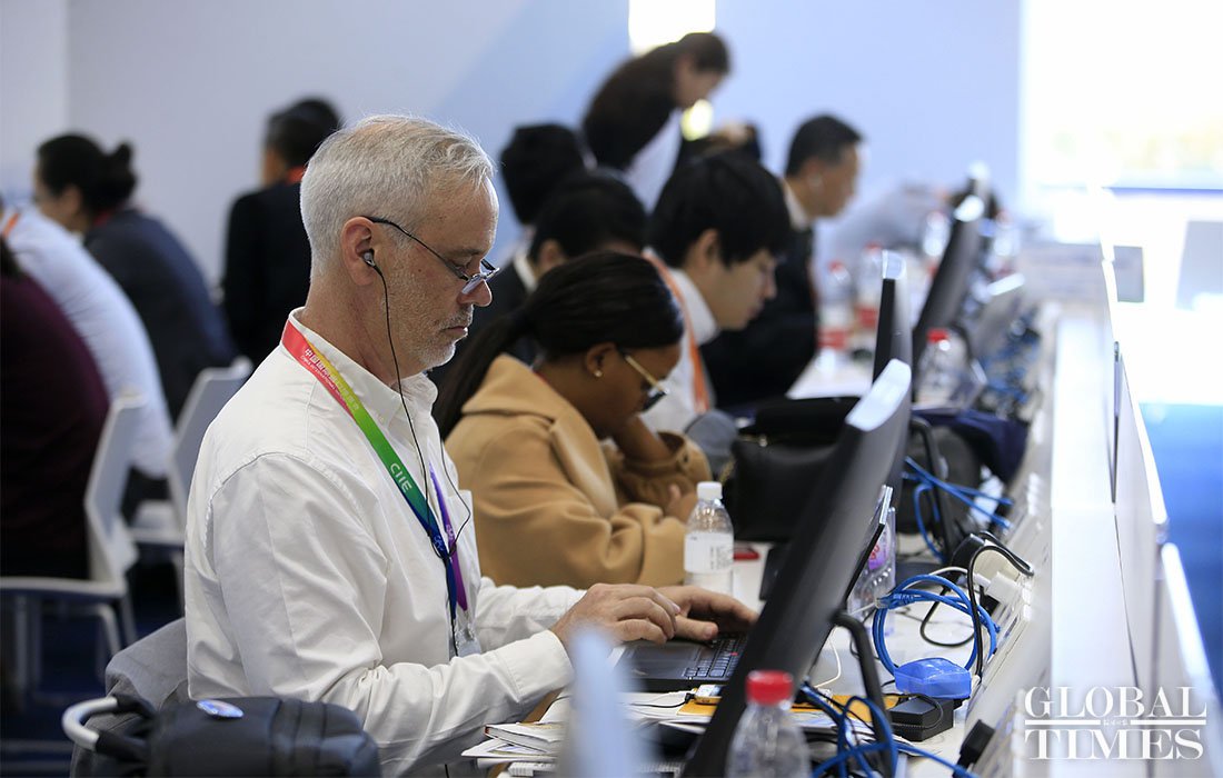 What were those over 4,300 reporters covering the 2nd CIIE doing in the media center, when the big event kicked off today? Take a look!