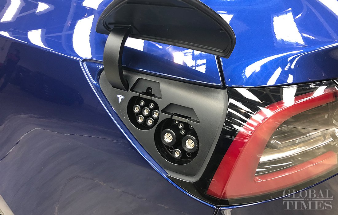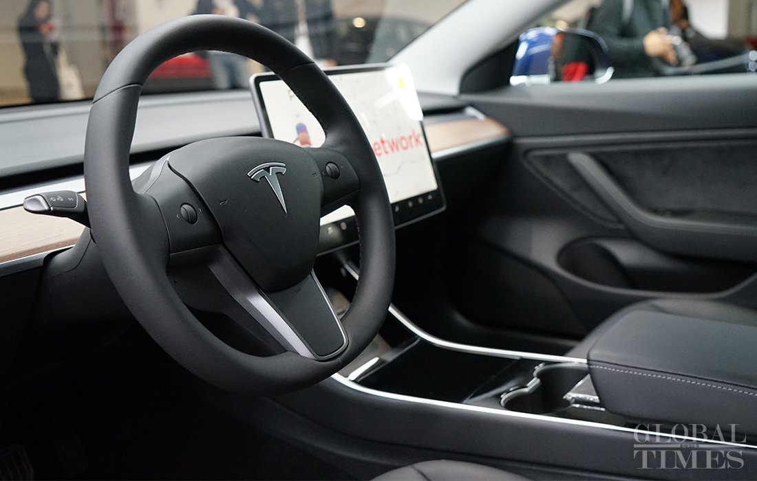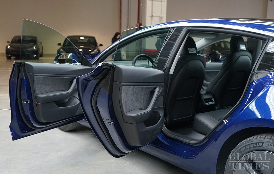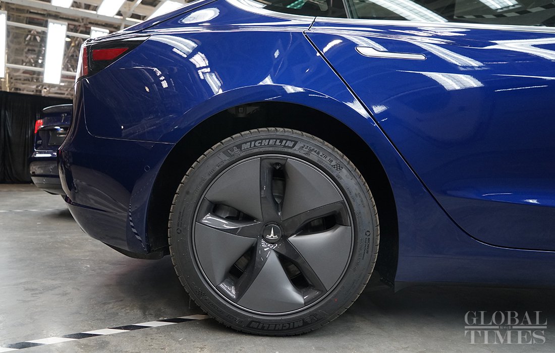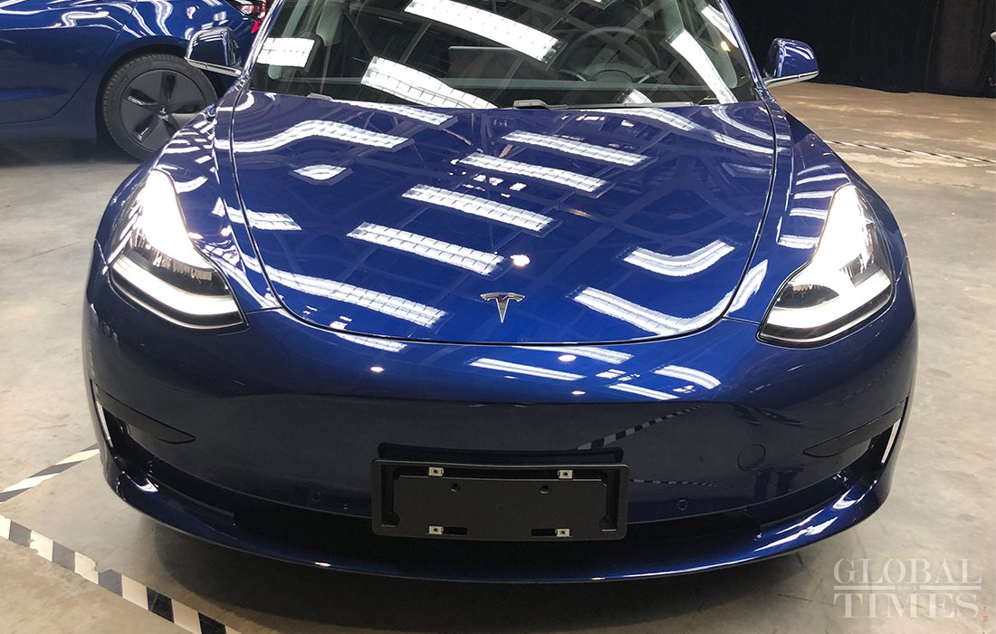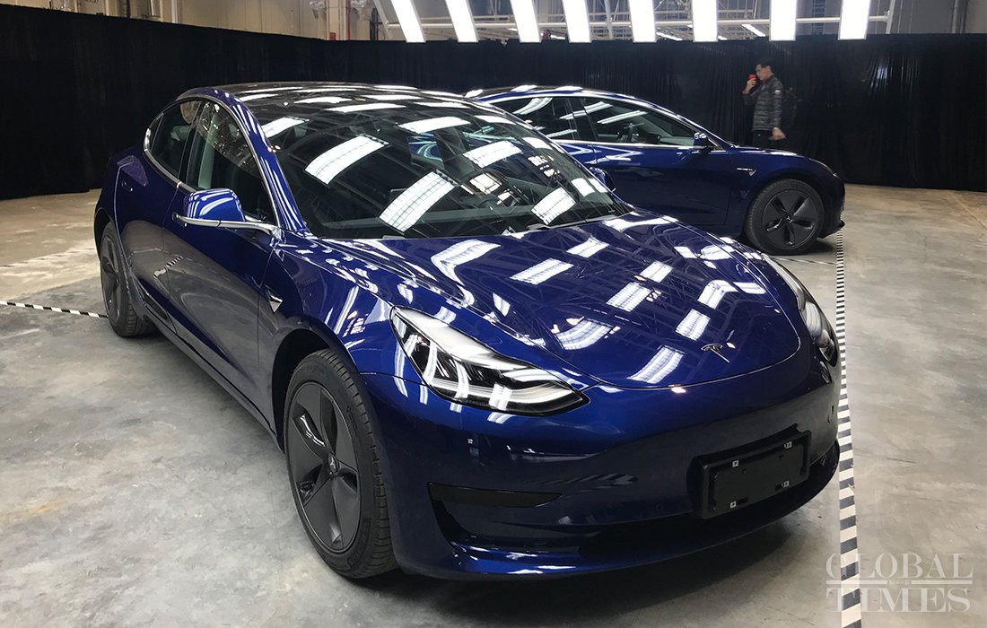 Tesla displayed its first batch of trial Model 3 made in China on Friday in Shanghai, which have the same look, interior decoration and parameters as the imported version, but with the brand name in Chinese at the rear.