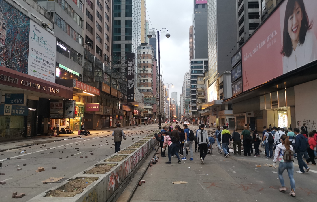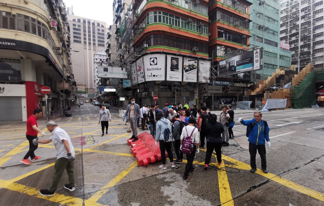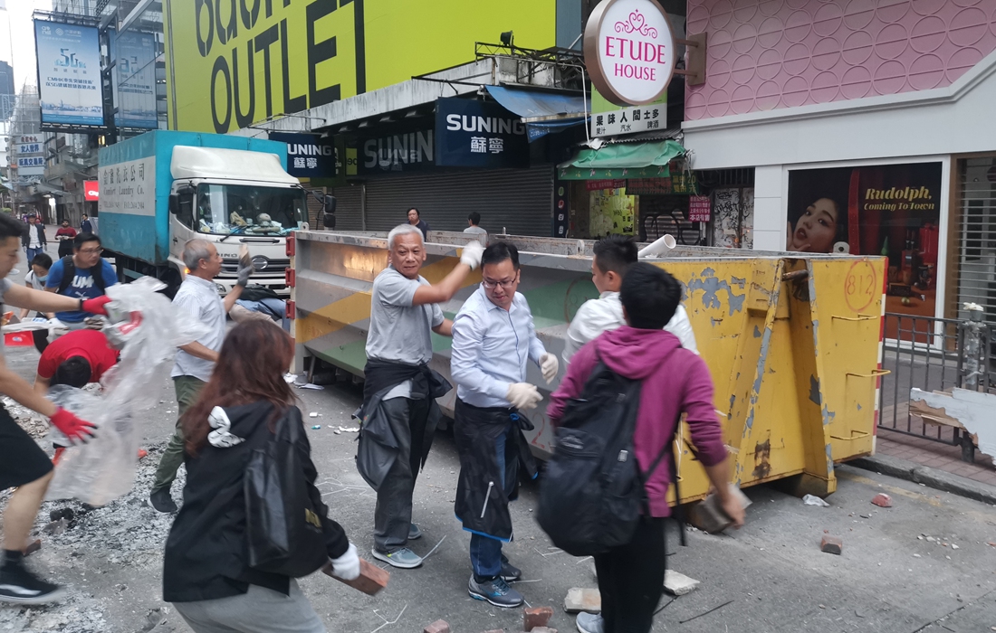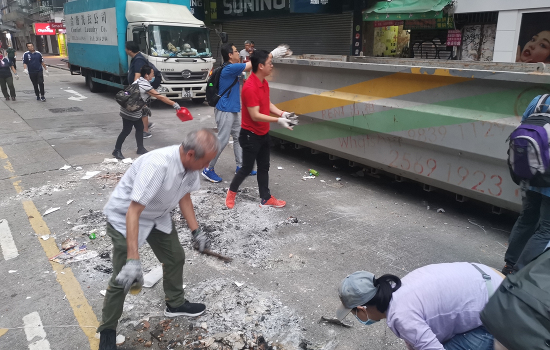 Early Saturday morning, Hong Kong residents volunteered to clean the streets cluttered by the rioters on Nathan Road in Mong Kok.