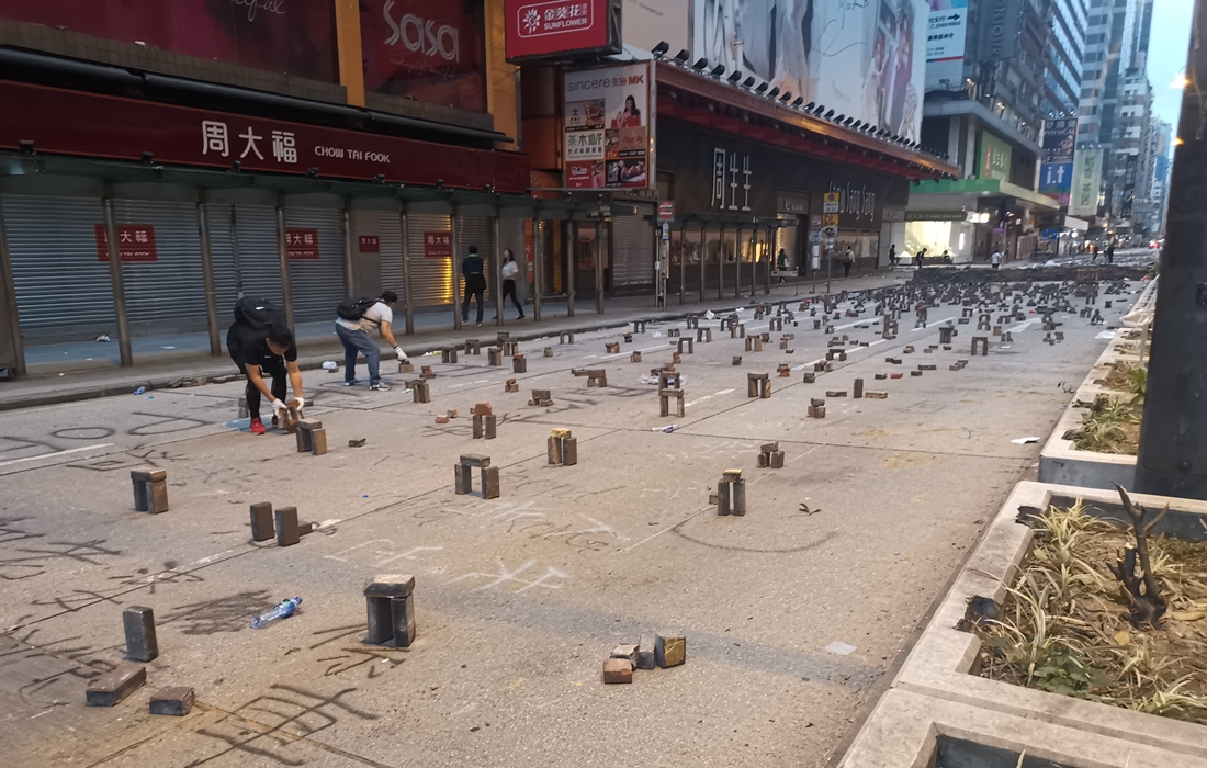 Early Saturday morning, Hong Kong residents volunteered to clean the streets cluttered by the rioters on Nathan Road in Mong Kok. figcaption >