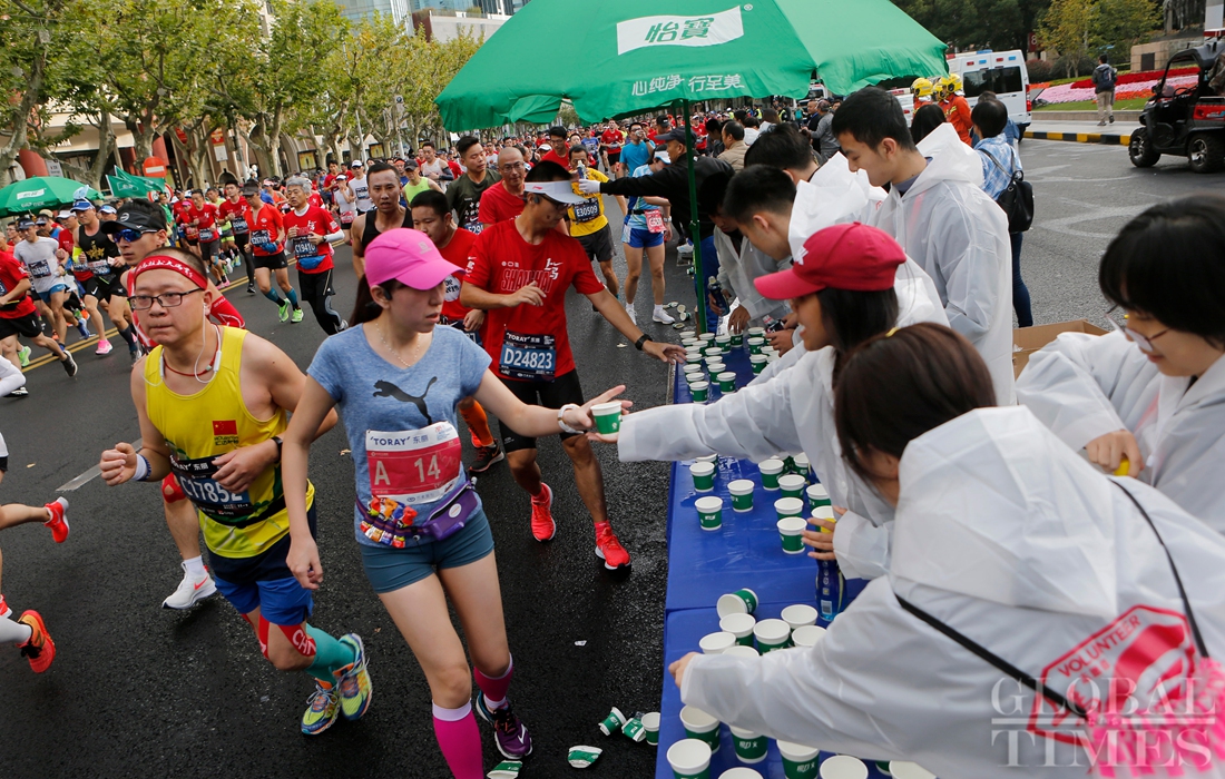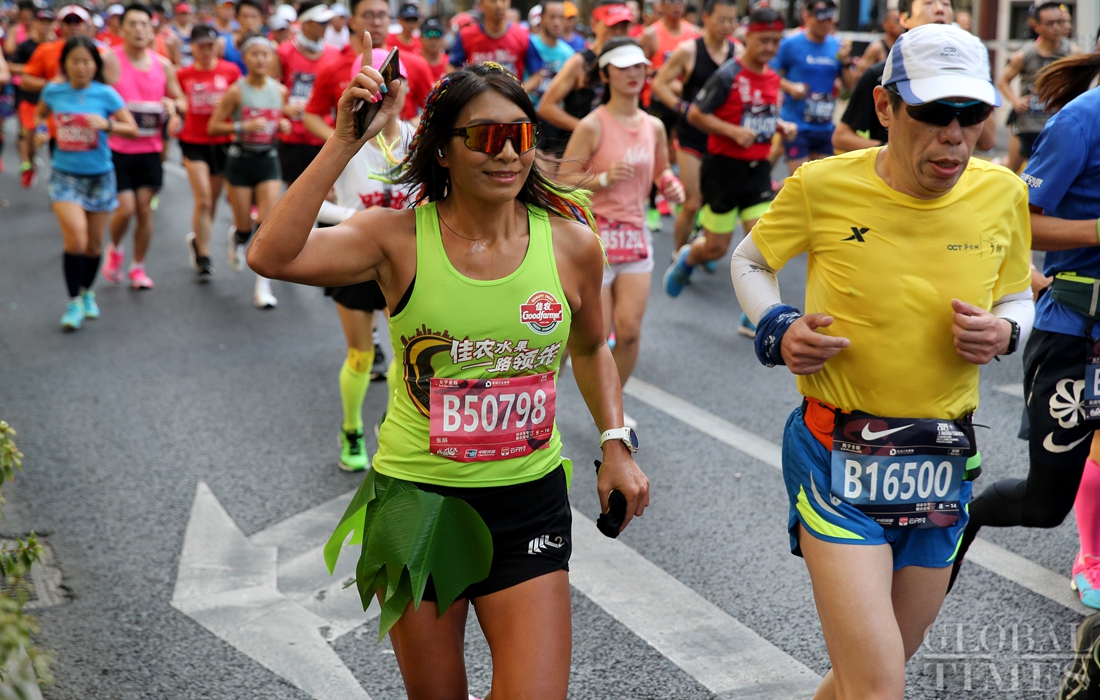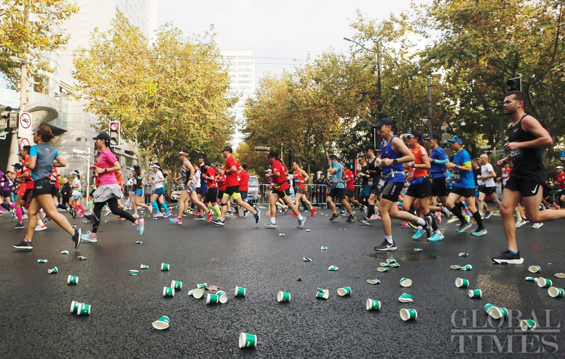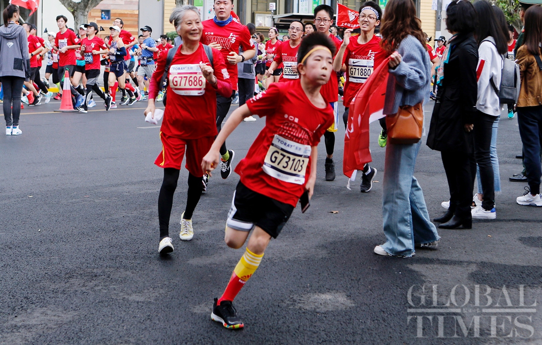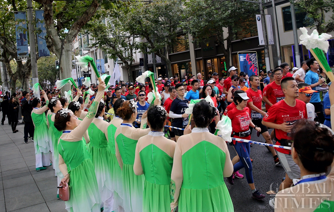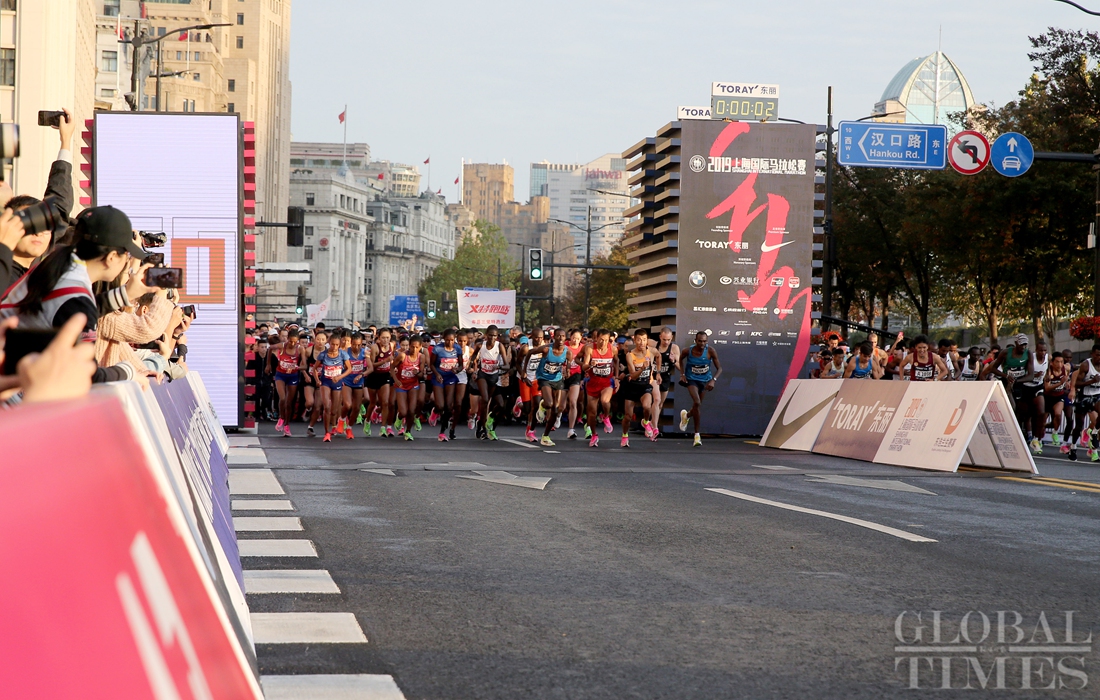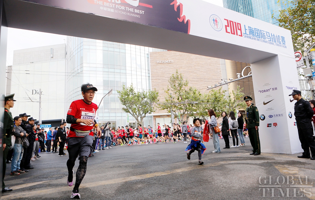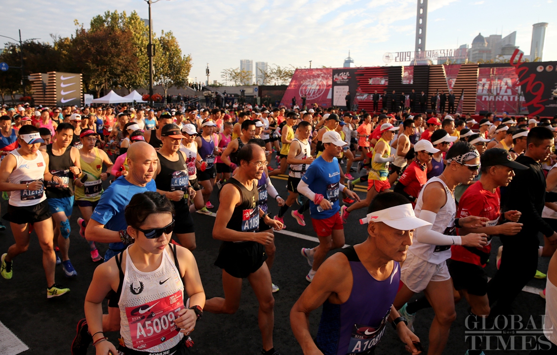 The 2019 Shanghai International Marathon kicked off Sunday morning, featuring 38,000 Chinese and foreign runners. The route of the full marathon covered Shanghai's Huangpu, Jing'an and Xuhui districts. (Photos: Yang Hui/GT)