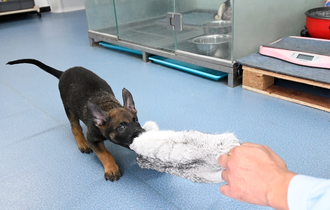 File photo of an under-training puppy. Photo: Courtesy of Beijing Municipal Public Security Bureau figcaption >