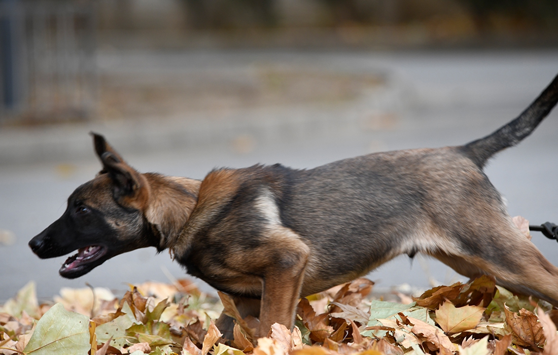 A file photo shows one of the cloned dogs undertaking an outdoor training session. Photo: Courtesy of Beijing Municipal Public Security Bureau figcaption >