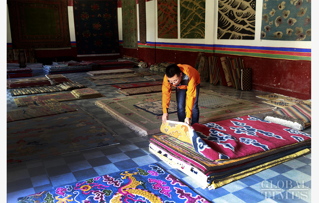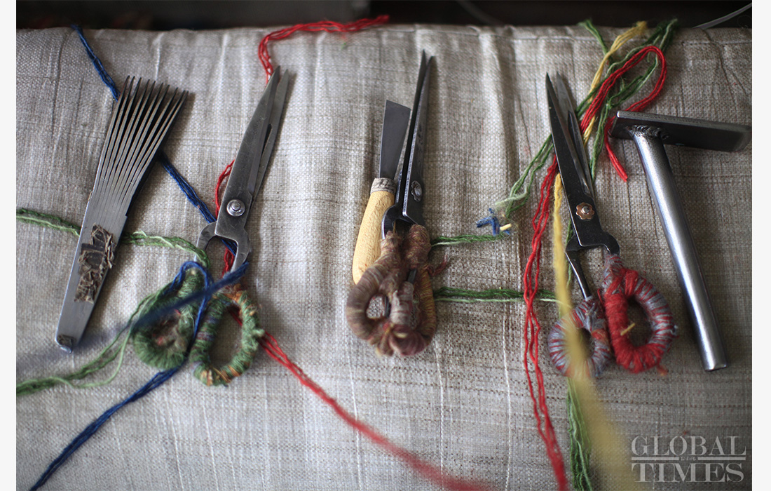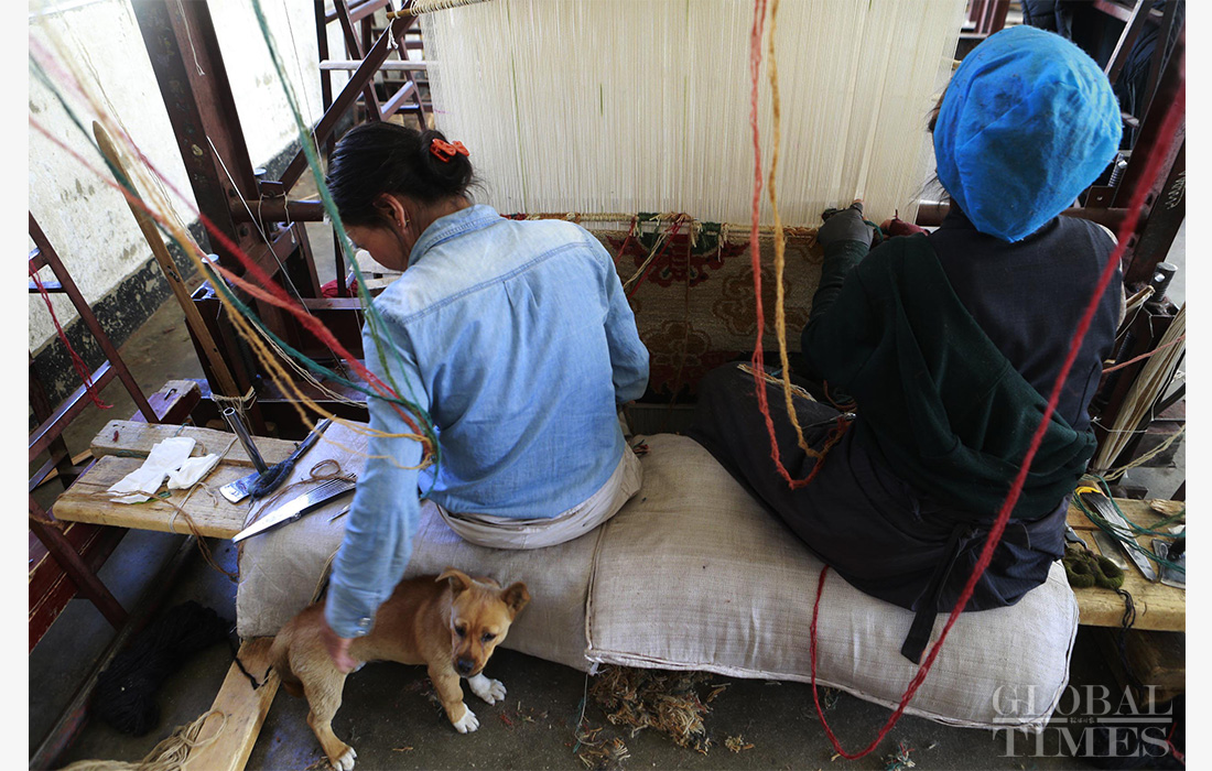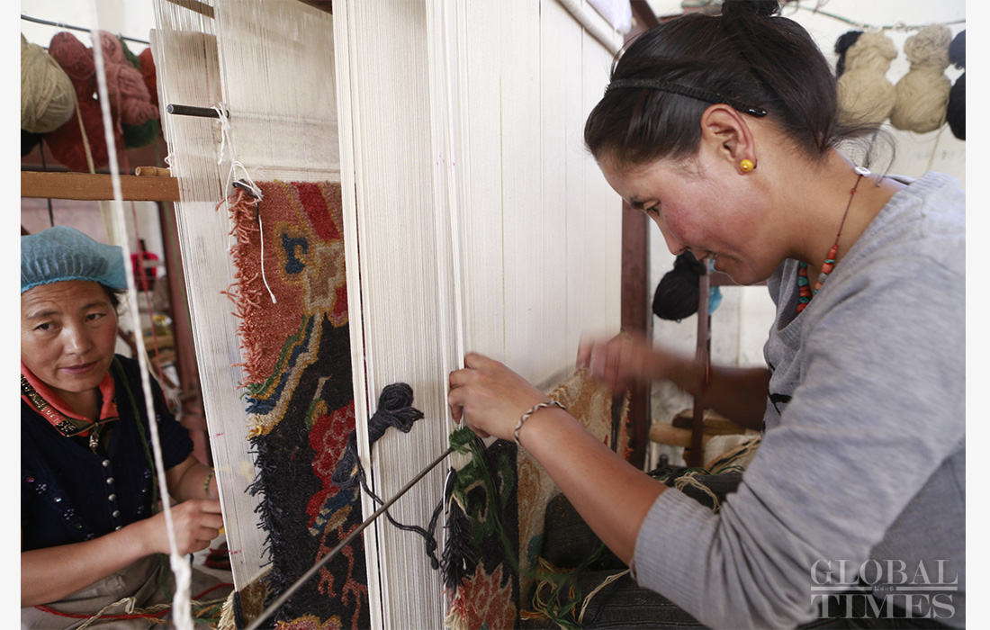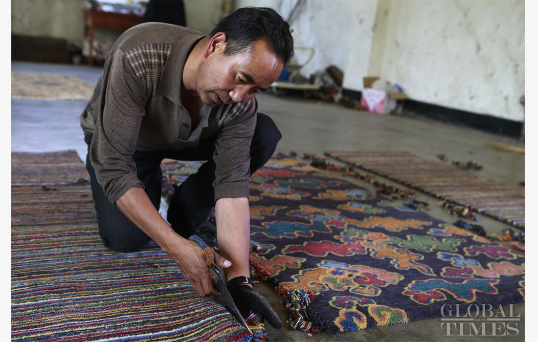 Khawachen is situated far from the center of Lhasa, Tibet Autonomous Region. The entrance is barely noticeable from the street. But when you walk in, you see rows of washed carpets drying in the courtyard. In the neighboring room, workers sit at looms weaving wool threads. This handmade Tibetan rug works was founded by Kesang Tashi, a Tibetan-American and a Dartmouth-educated international banker. In 1986, when visiting his homeland, he came upon traditional Tibetan rug makers and became fascinated with the craft. Photos: Li Hao/GT
