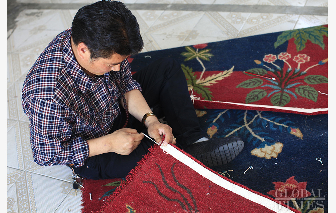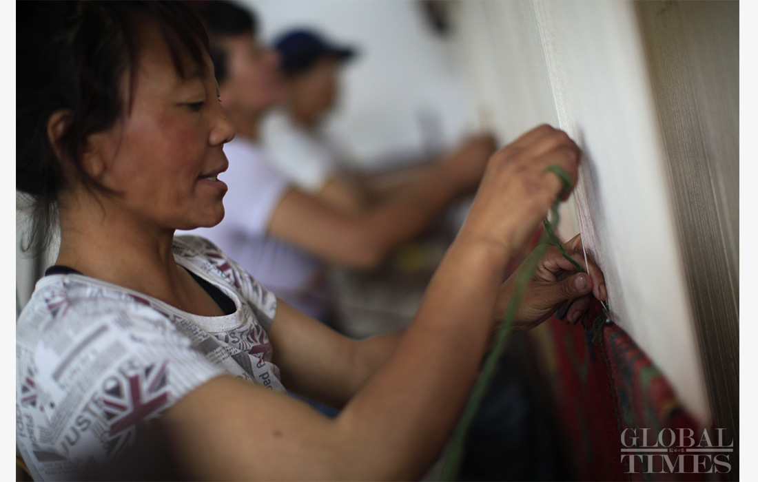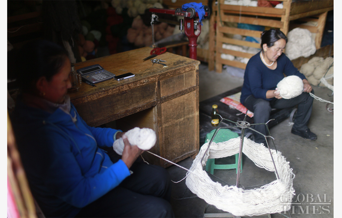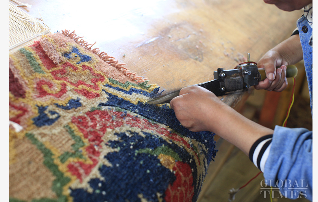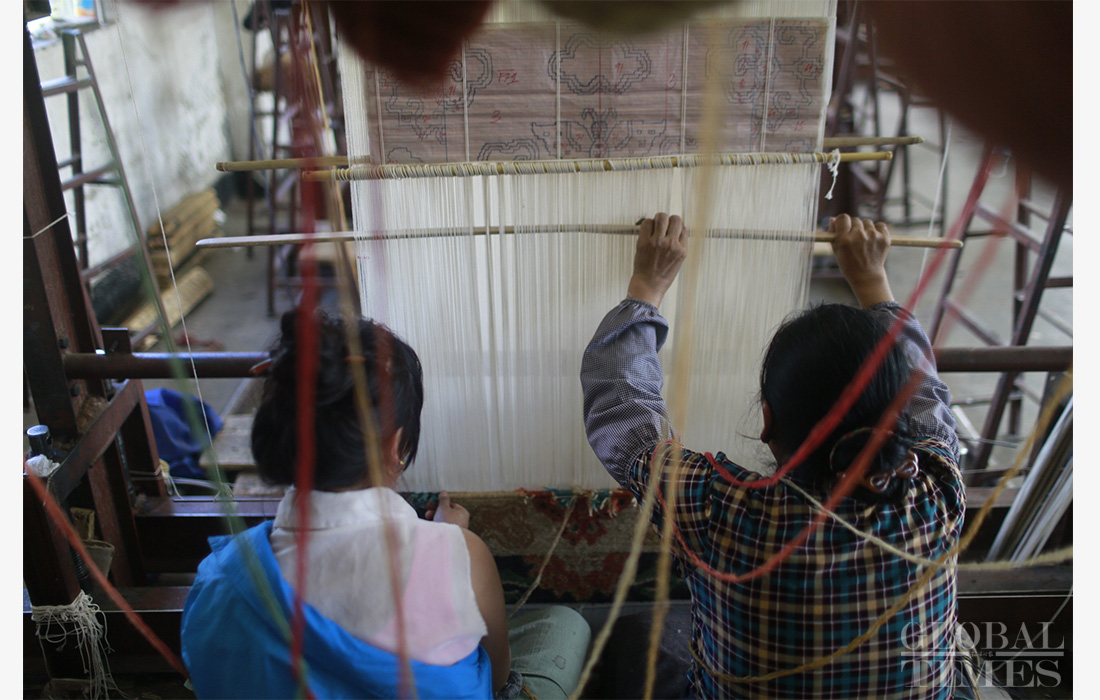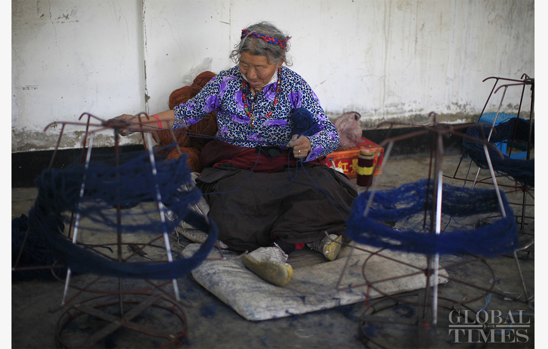 Khawachen is situated far from the center of Lhasa, Tibet Autonomous Region. The entrance is barely noticeable from the street. But when you walk in, you see rows of washed carpets drying in the courtyard. In the neighboring room, workers sit at looms weaving wool threads. This handmade Tibetan rug works was founded by Kesang Tashi, a Tibetan-American and a Dartmouth-educated international banker. In 1986, when visiting his homeland, he came upon traditional Tibetan rug makers and became fascinated with the craft. Photos: Li Hao/GT