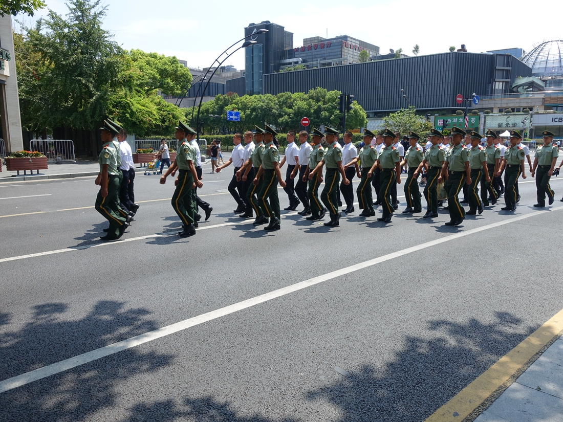 On May 27, 2016, a team of armed police passes by the West Lake. figcaption >