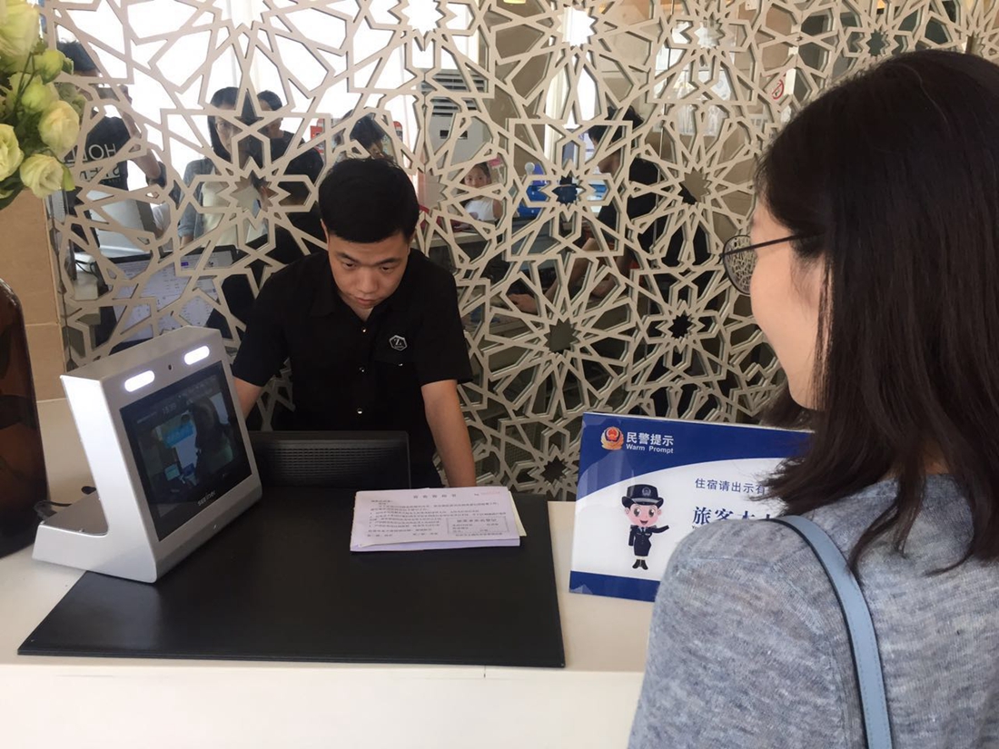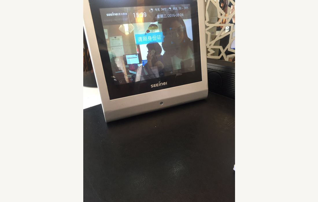 The ID authentication machine compares the photos of the reporter. figcaption >