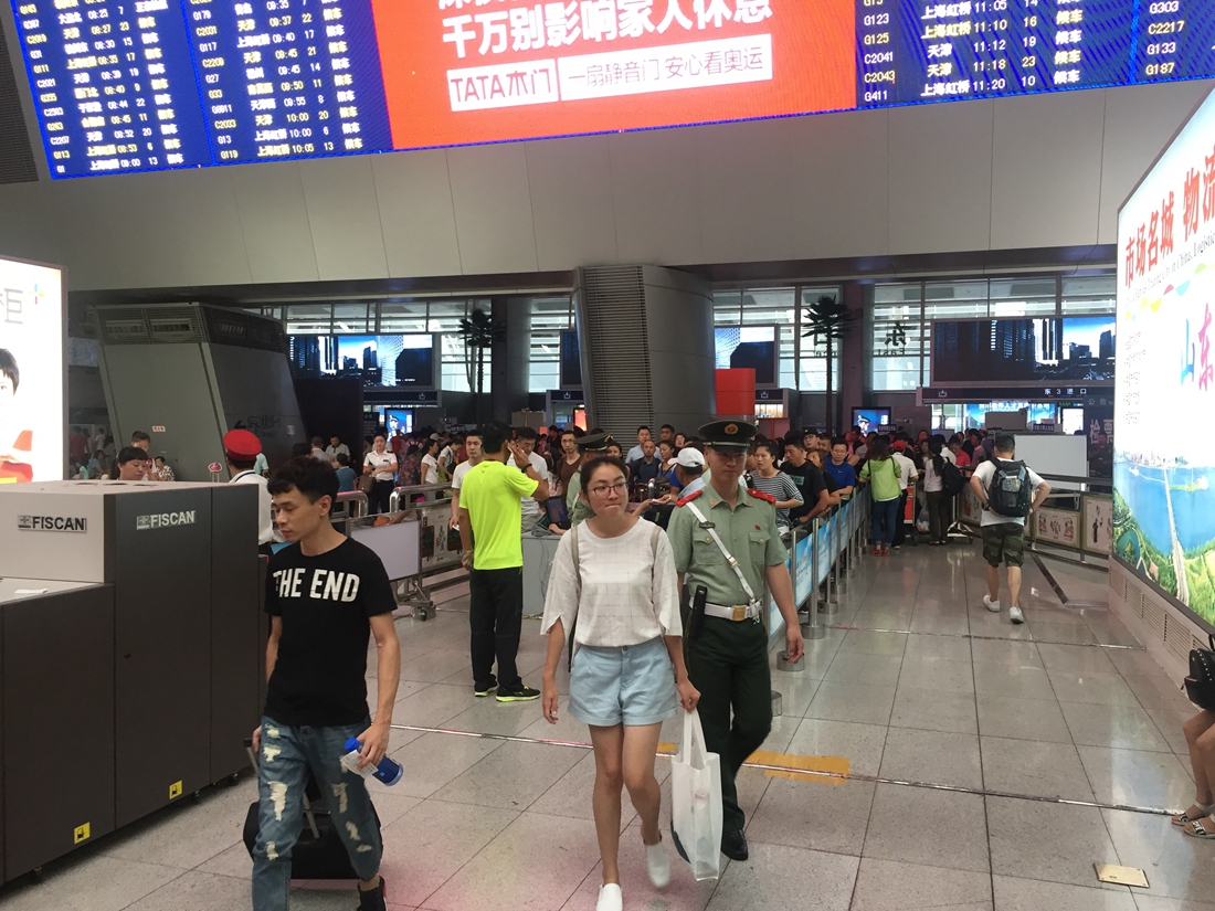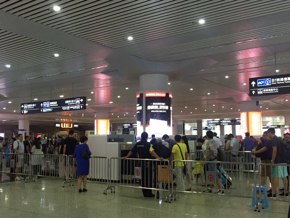 On May 24, 2016, passengers pass through the security check at the exit of Hangzhou East Railway Station. figcaption >
