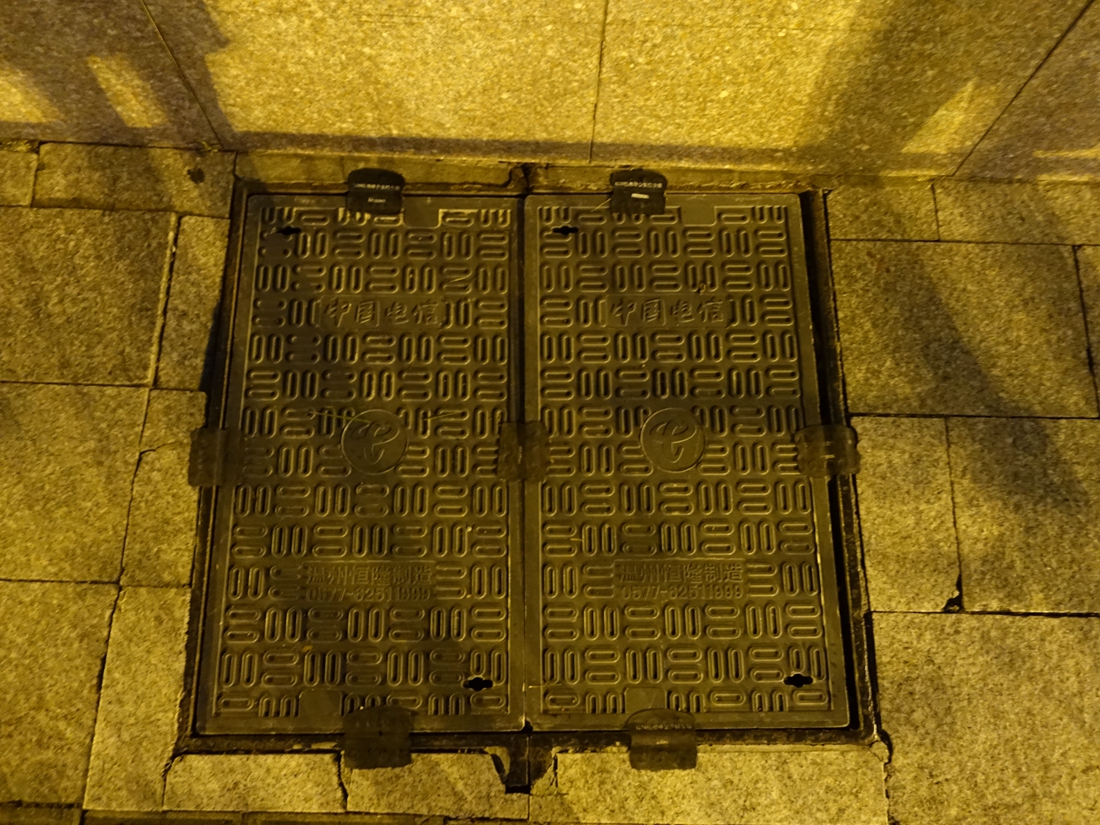 On May 25, 2016, all the manhole covers near the tourist spots in Hangzhou are sealed tightly to prevent dangerous materials from being dropped inside. According to the reporter, the locks cannot be forced open by hand. figcaption >