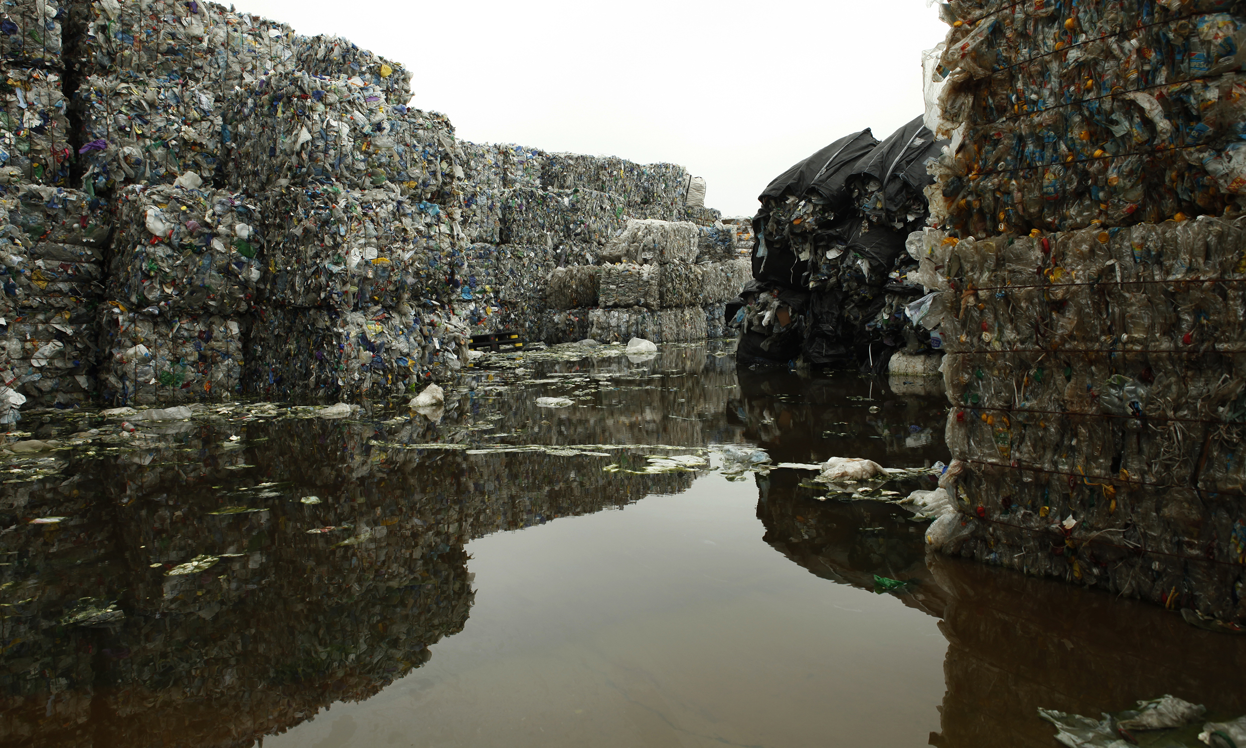 Piles of imported plastic waste are stacked near a port in Tianjin.