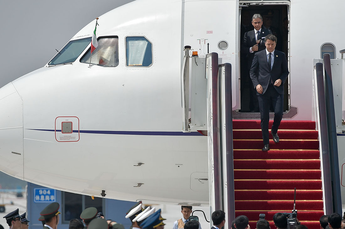 Italian Prime Minister Matteo Renzi arrives in Hangzhou, September 3, 2016. Aircraft: A319CJ Photo: CFP figcaption >