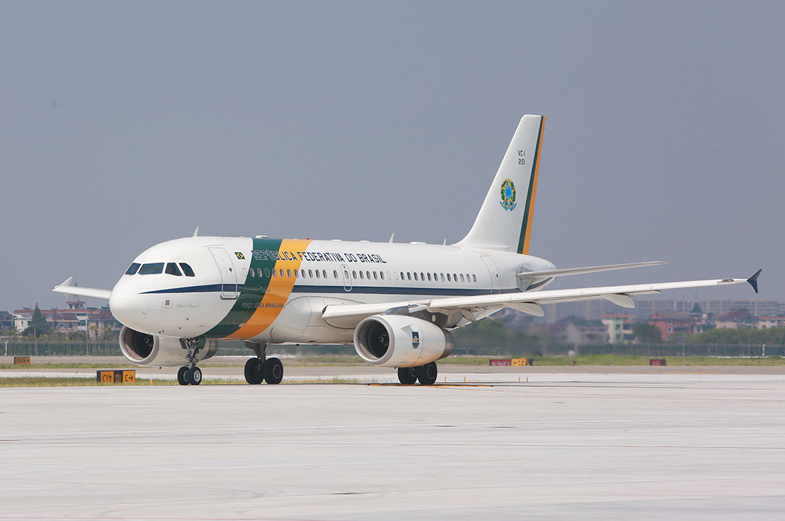 Brazil’s President Michel Temer’s plane arrives in Hangzhou, September 2, 2016. Aircraft: Airbus A319 Photo: CFP figcaption >