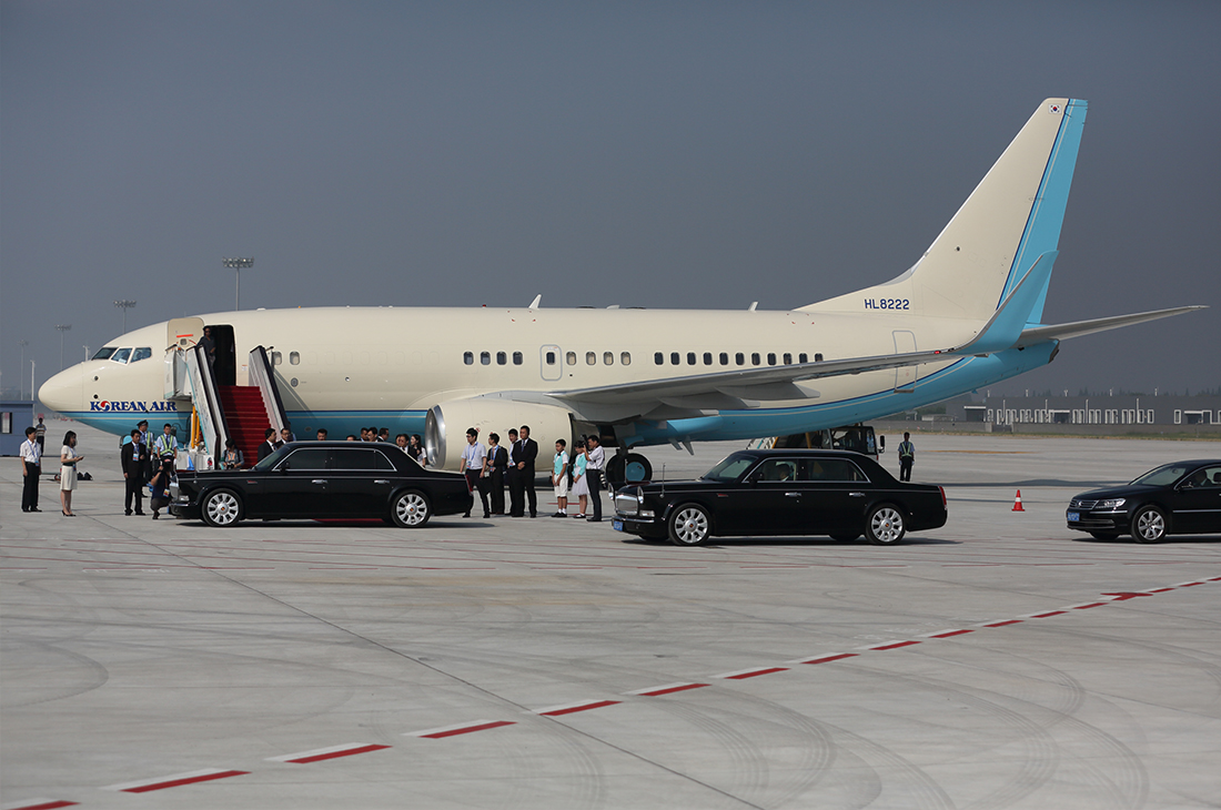 Prime Minister of Japan Shinzo Abe’s plane arrives at Hangzhou Xiaoshan International Airport, September 4, 2016. Aircraft: 747-400 Photo: CFP