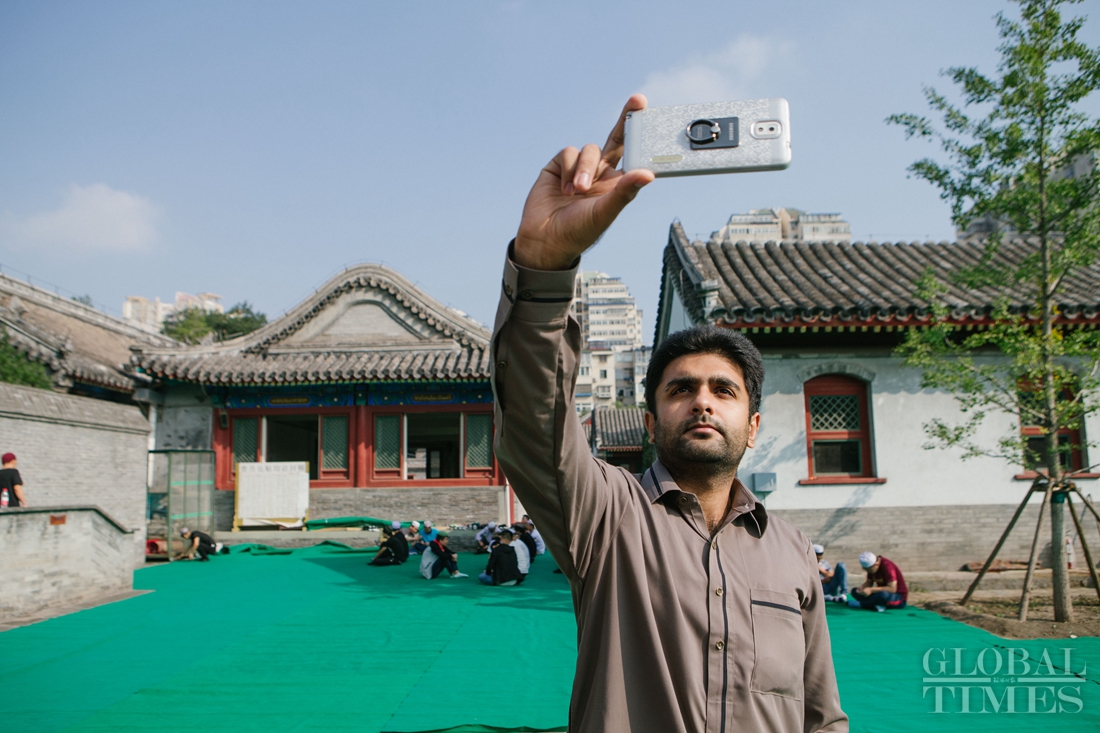A Muslim takes a selfie at the Niujie Mosque in Beijing on September 12. Photo: Li Hao/GT figcaption >