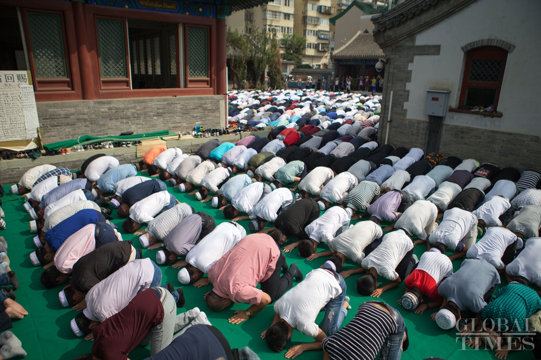 Muslims attend a prayer service at the Niujie Mosque in Beijing on September 12. Photo: Li Hao/GT