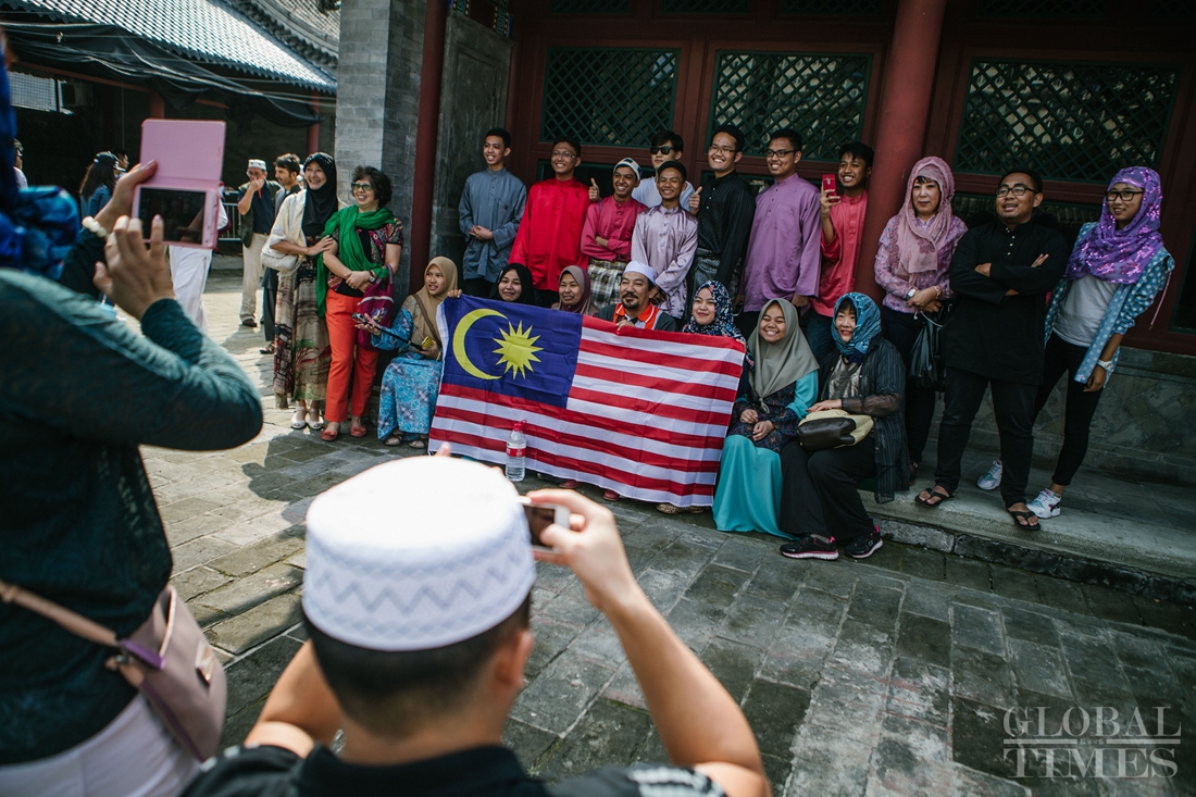 Muslims from Malaysia take a group photo at the Niujie Mosque in Beijing on September 12. Photo: Li Hao/GT figcaption >