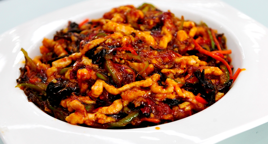 Yuxiang shredded pork, literally fish-fragrant shredded pork, in truth contains no fish or seafood. Instead the dish gets its name from the traditional Sichuan method for cooking fish, combining minced Sichuan pickled chili, white scallion, ginger, garlic, sugar, salt, bean paste, soy sauce and chili peppers. figcaption >