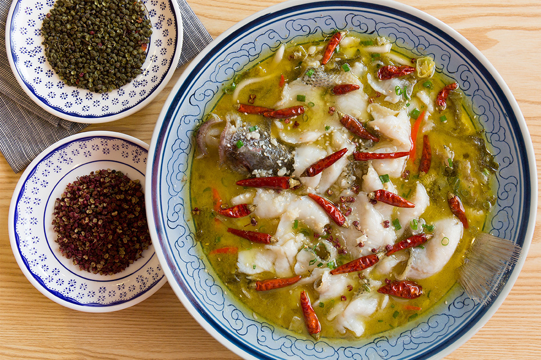 Boiled fish with pickled cabbage and chili is a common dish in Sichuan households. The spicy and sour sliced grass carp is both tasty and nutritious, and many prefer to take a sip of the soup before enjoying the fish itself. figcaption >