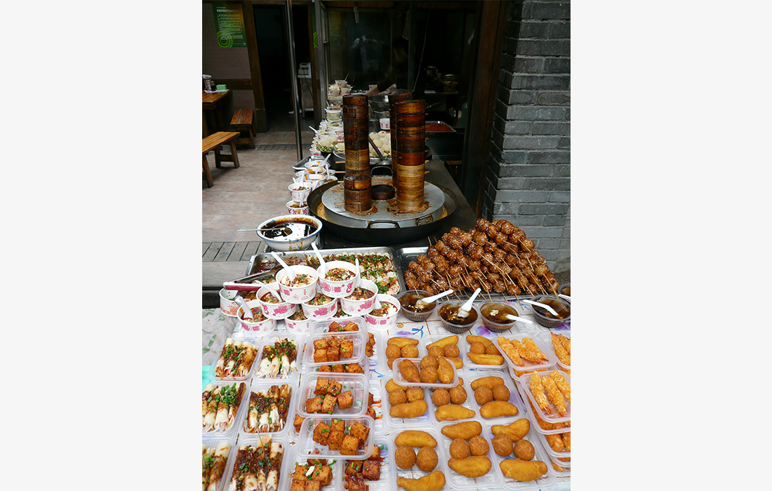 Various Sichuan-style snacks can be found in Chengdu's Kuanzhai Alley. Chengdu, capital of Sichuan Province, has a rich gastronomic tradition, which visitors can learn more about at the city's museum honoring the culture of Sichuan cuisine. figcaption >