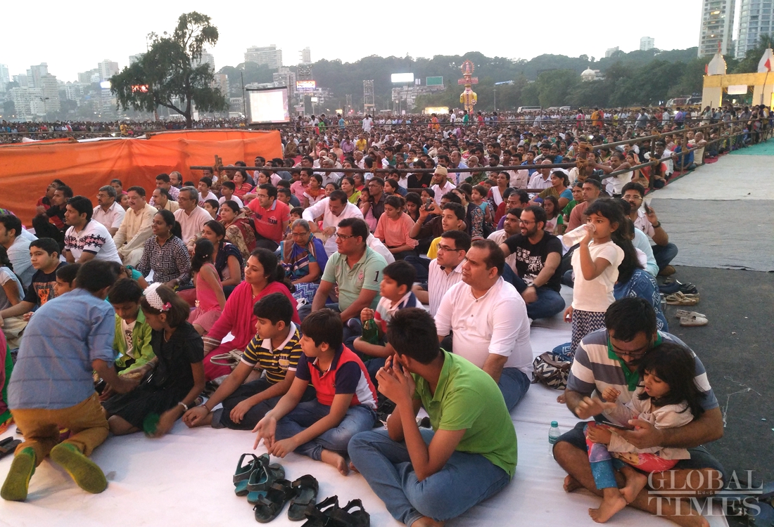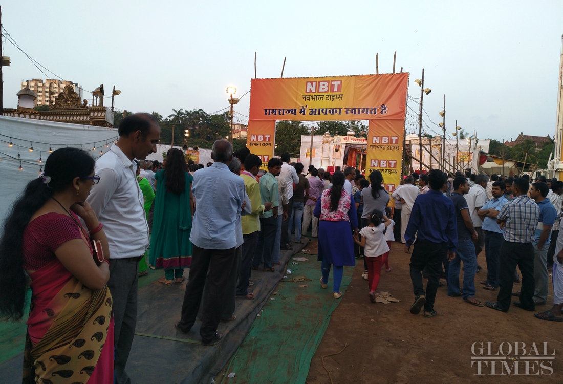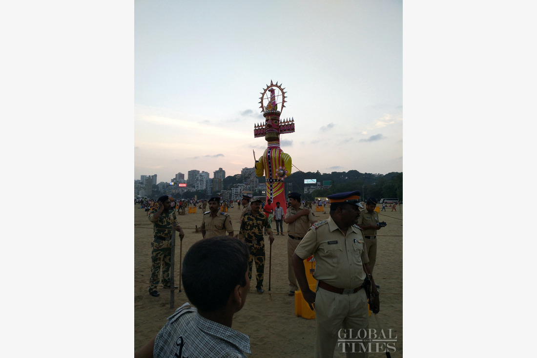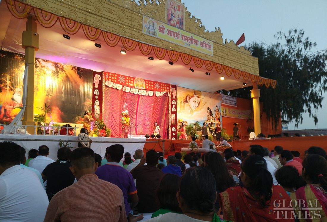 Local Hindus in Mumbai, India celebrate the traditional Dussehra festival on the night of October 11 by watching a stage production depicting the final battle between Lord Rama and the demon king Ravana. The festival, also known as Vijayadashami, commemorates the triumph of Lord Rama over Ravana in a 10-day battle, representing the victory of good over evil. Photo: Wang Cong/GT