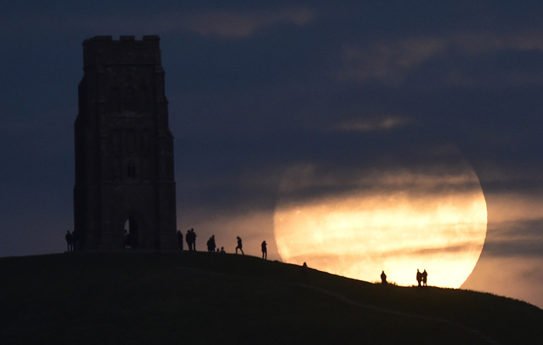 The moon rises near Glastonbury Tor a day before the "supermoon" spectacle, in Glastonbury, Britain November 13, 2016. Photo: CFP/Rebecca Naden figcaption >