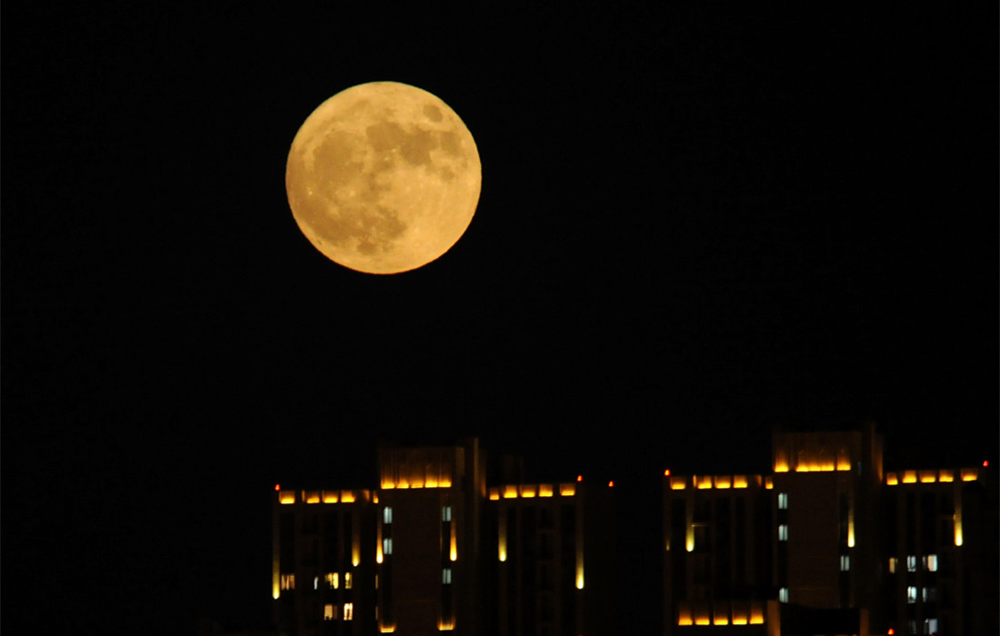 The “supermoon”, which orbits closer to the Earth than at any time since 1948, lights the sky in China’s Dalian on November 14, 2016. Photo: CFP figcaption >
