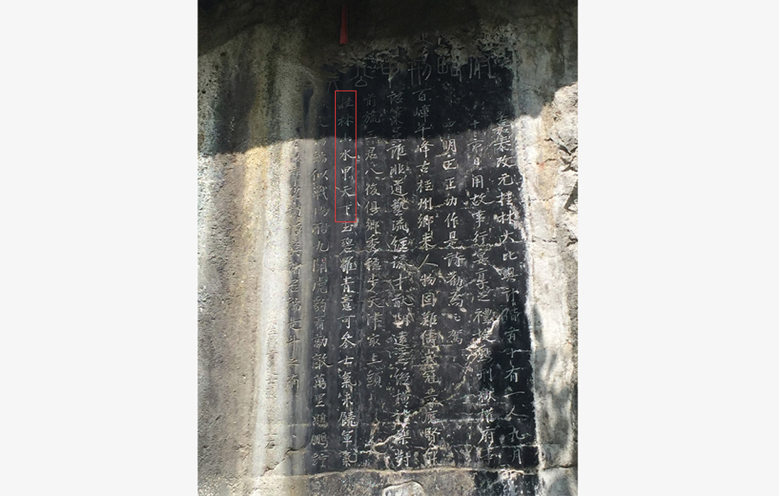 A stone inscription on the Duxiufeng, or Solitary Beauty Hill, in the Jingjiang Palace, describes the beauty of Guilin’s scenery. This stone is the source of the famous saying “the rivers and mountains of Guilin are the best under heaven.” Photo: Jin Jianyu/GT figcaption >