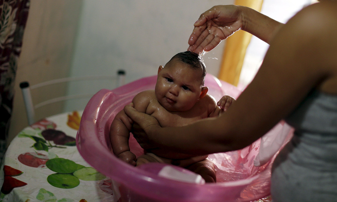 January: Gleyse Kelly da Silva bathes her daughter Maria Giovanna, who has microcephaly, at home in Recife, Brazil, on January 30. Microcephaly has been linked to the spread of the mosquito-borne Zika virus. Photo:CFP