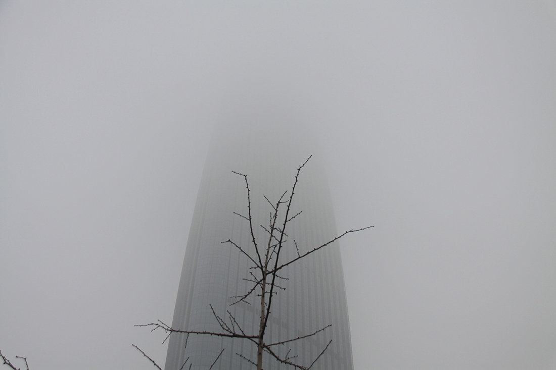 A building disappears into nothingness, shrouded by the heavily polluted air of Jinan, East China’s Shandong Province on January 2, 2016. Jinan is one of the cities passed by the blackened high-speed train along the Beijing-Shanghai line. figcaption >