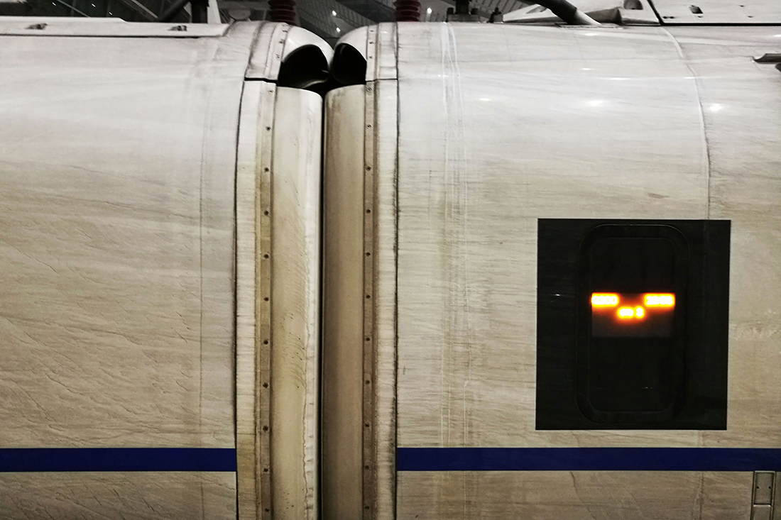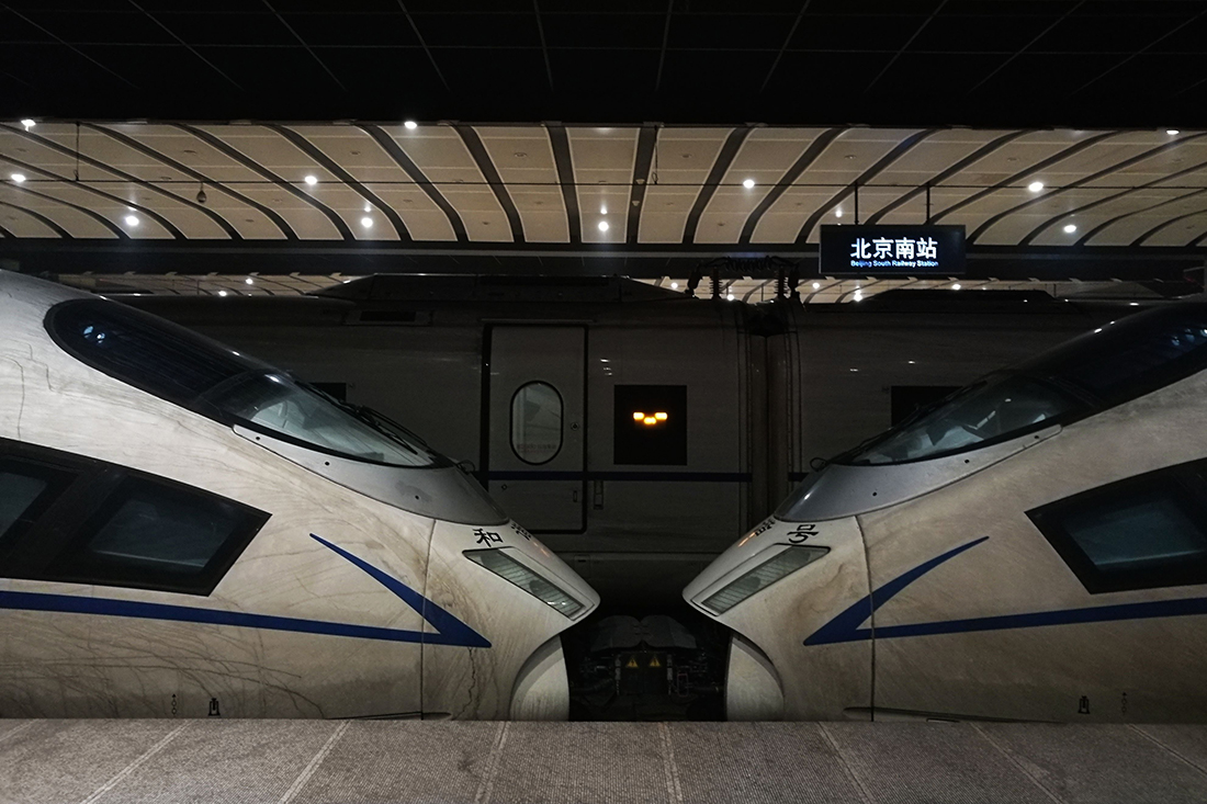 A high-speed train sits covered with dust on January 2, 2016, after completing the 800-kilometer trip between Beijing and Shanghai in just over five hours. figcaption >