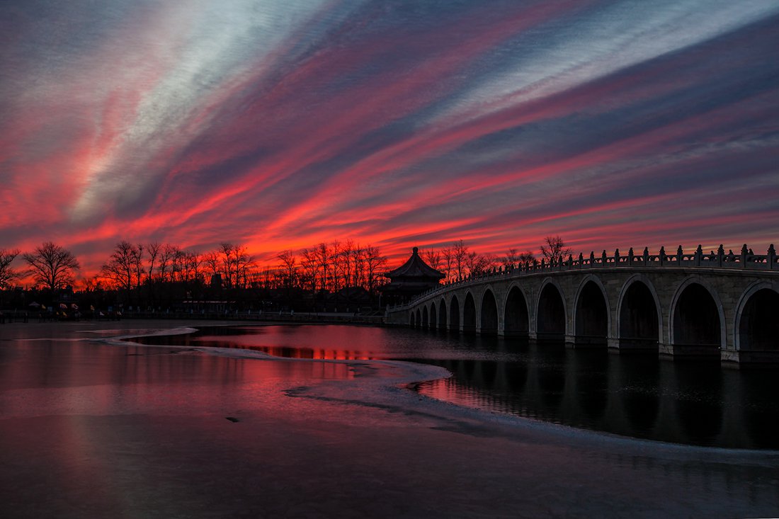 Beijing was seeing the world through rose tinted glasses once again after waking up to these splendid sunrise scenes on January 10.
