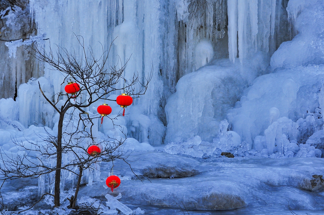 Icefalls create beautiful winter landscapes in Yanchi Town, Southwest Beijing on January 9, 2017. Photo: CFP figcaption >