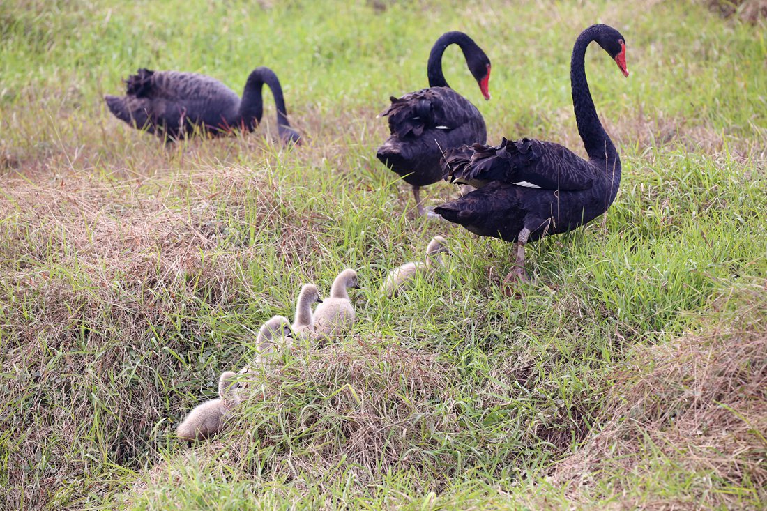 Baby swans on parade