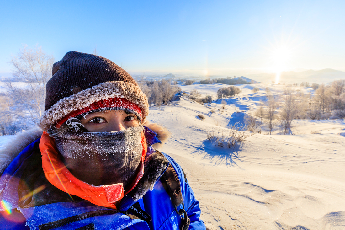 A visitor stands on the frozen grasslands as cold weather continues in Chifeng, North China’s Inner Mongolia Autonomous Region on January 12, 2017. Photo: CFP figcaption >