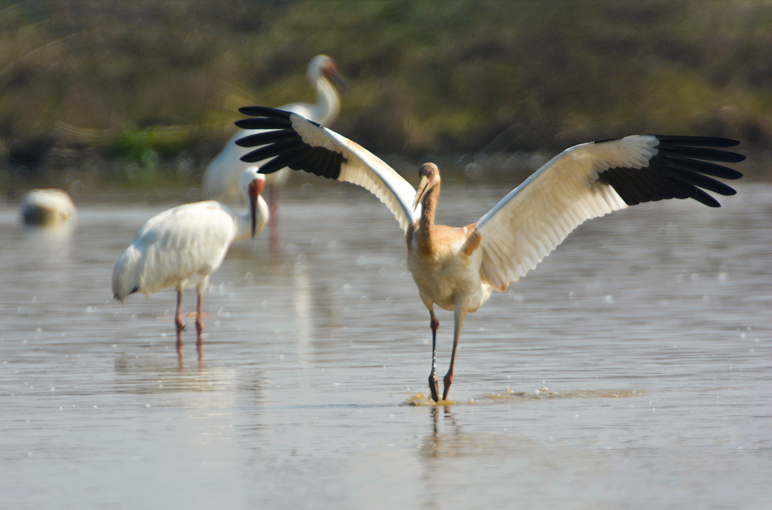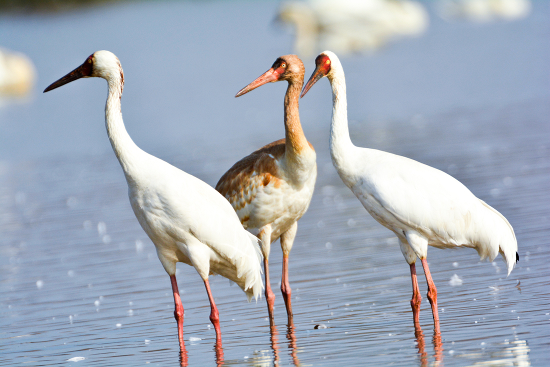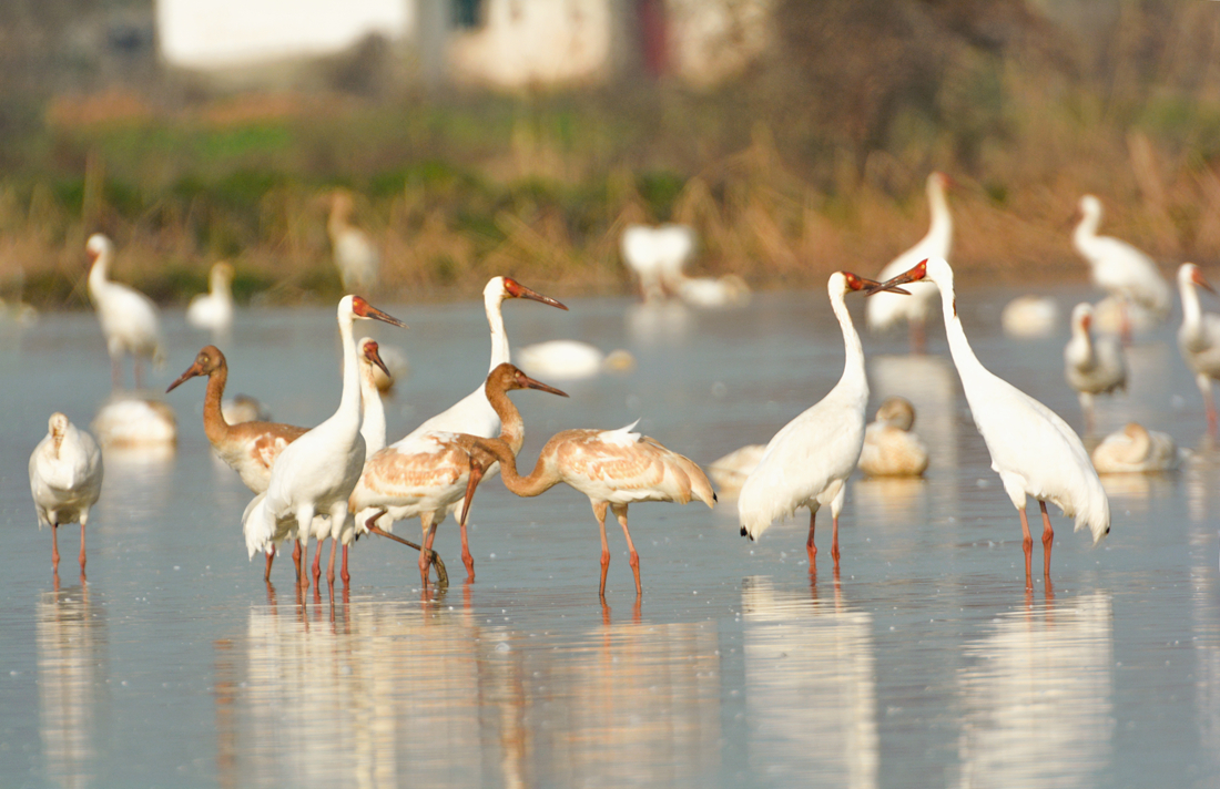 A large number of White cranes migrate to China's Poyang Lake region in Nanchang, capital of East China's Jiangxi Province on January 21, 2017. White cranes are protected animals in China.