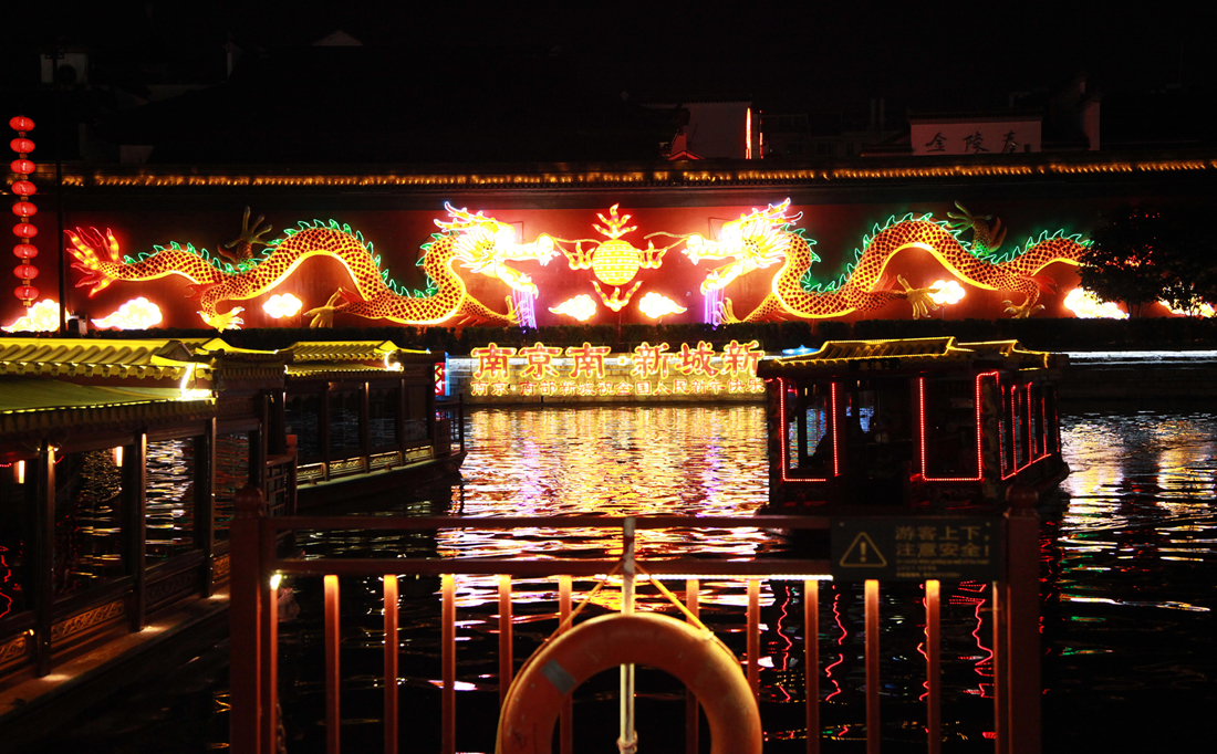 The Qinhuai River glows with reflections of lantens at the 31st Chinese - Qinhuai Lantern Fair in Nanjing, capital of East China's Jiangsu Province on January 23, 2017. Photo: CFP figcaption >