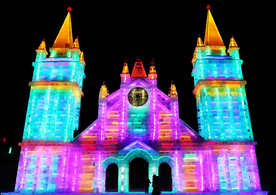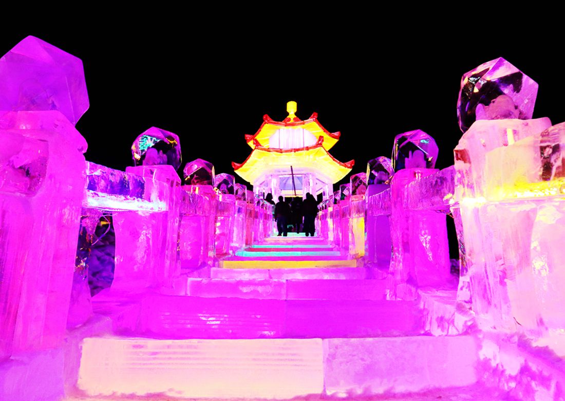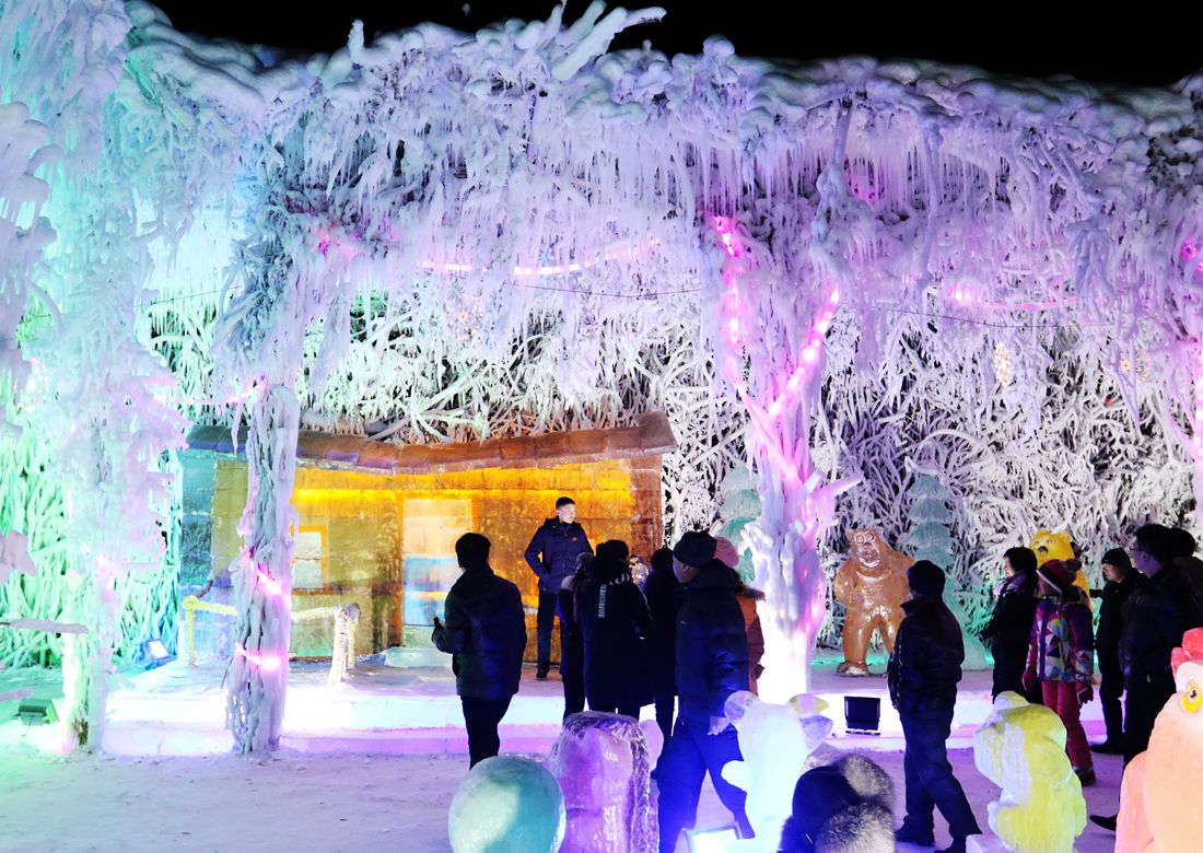 Tourists visit structures made from ice blocks at Ice and Snow World Park as they celebrate the New Year in Altay, Northwest China's Xinjiang Uygur Autonomous Region on January 22, 2017. Photo: CFP figcaption >