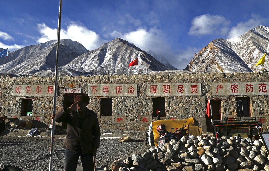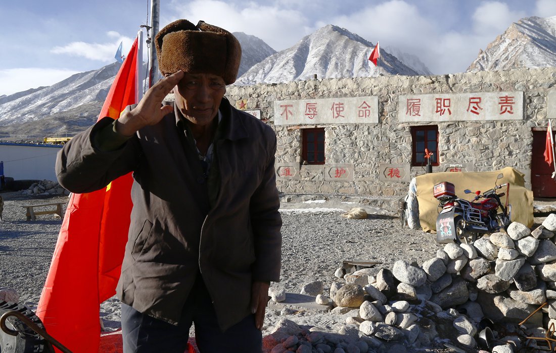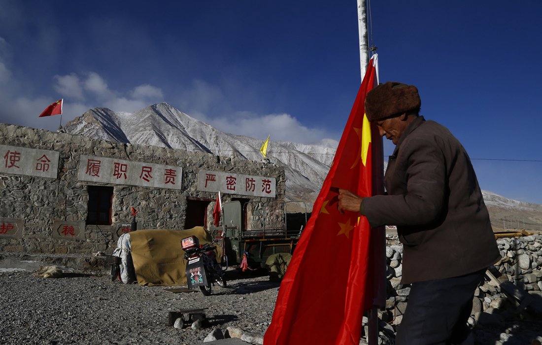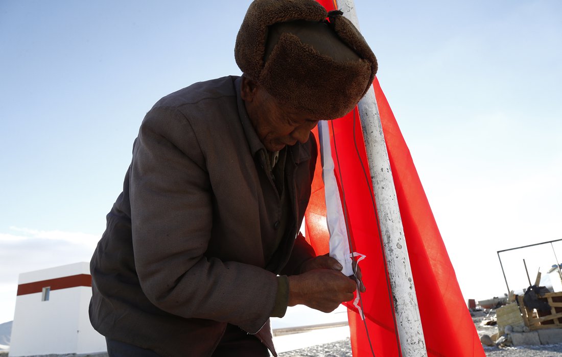 64-year-old militiaman Pema Urgyen prepares to raise a brand new national flag in celebration of the Spring Festival in Ngari Prefecture, Southwest China's Tibet Autonomous Region on January 24, 2017. He has been a member of the militia since 1972, guarding Luma Bridge for close to half a century.